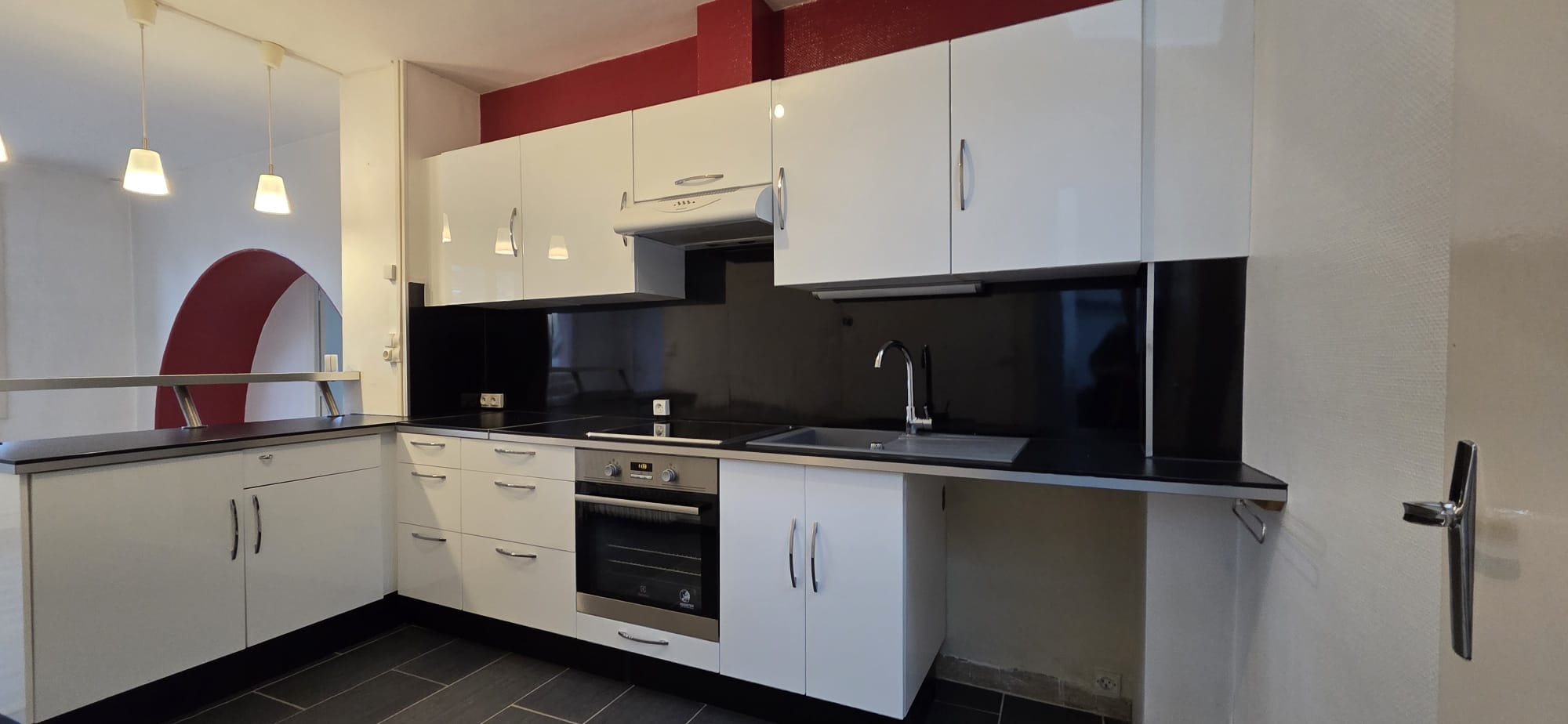 Au rez-de-chaussée, une cuisine aménagée et équipée d'un piano Lacanche.