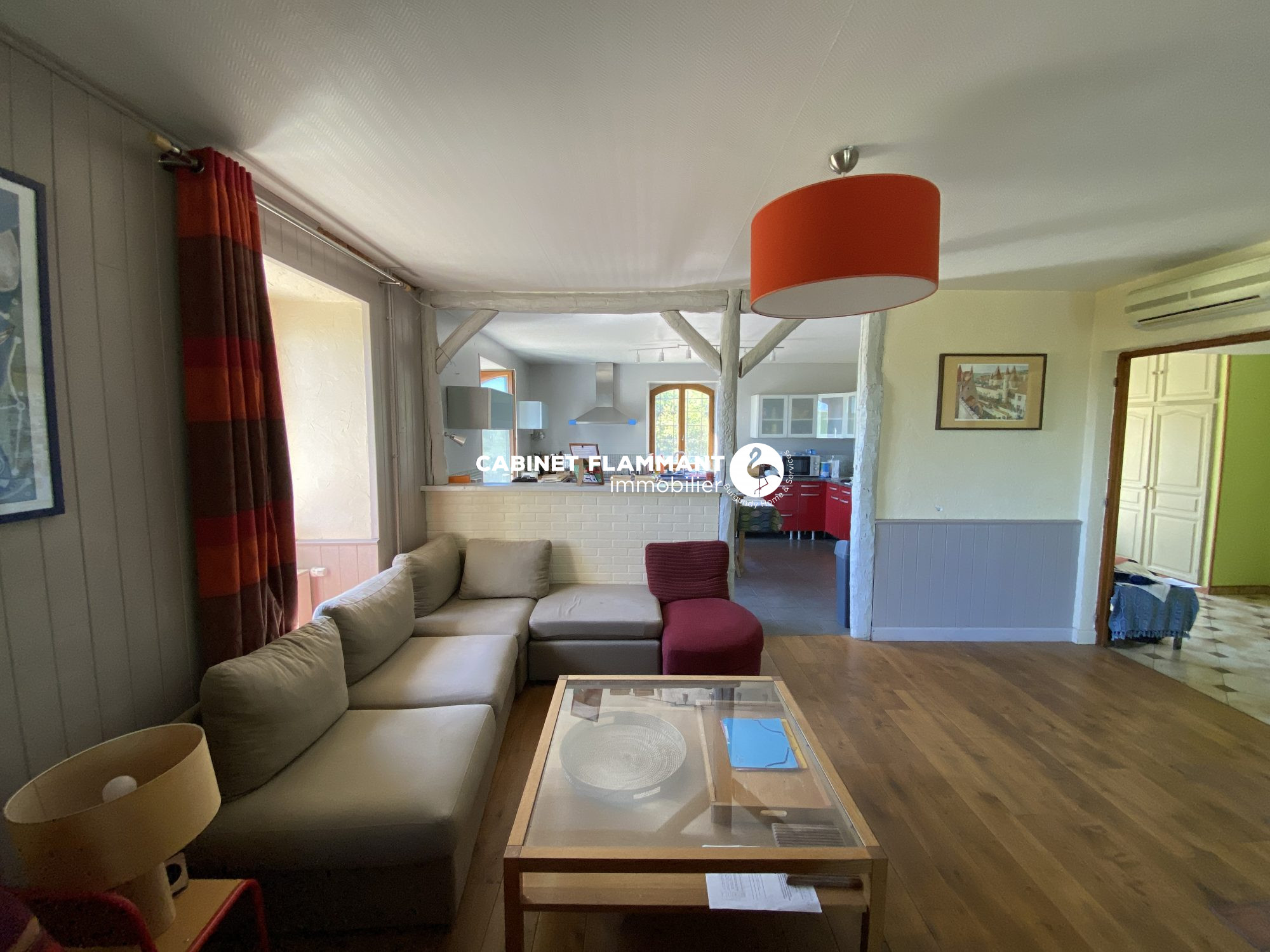 L'entrée se fait par une véranda qui ouvre sur une belle pièce de vie où la cuisine moderne et bien équipée se mêle harm...