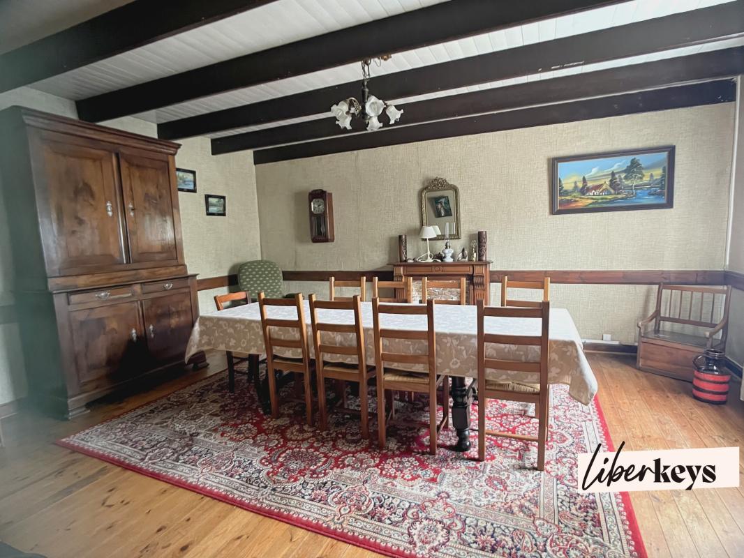 81889CCU22 - .Rez-de-chaussée : , chambre avec lavabo, débarras/buanderie, cuisine - séjour avec une cheminée en granite, 2 chambres/bureau, WC Étage : grand séjour / salle à manger avec une cheminée en granite,, trois chambres. salle d'eau, W.C, terrasse...