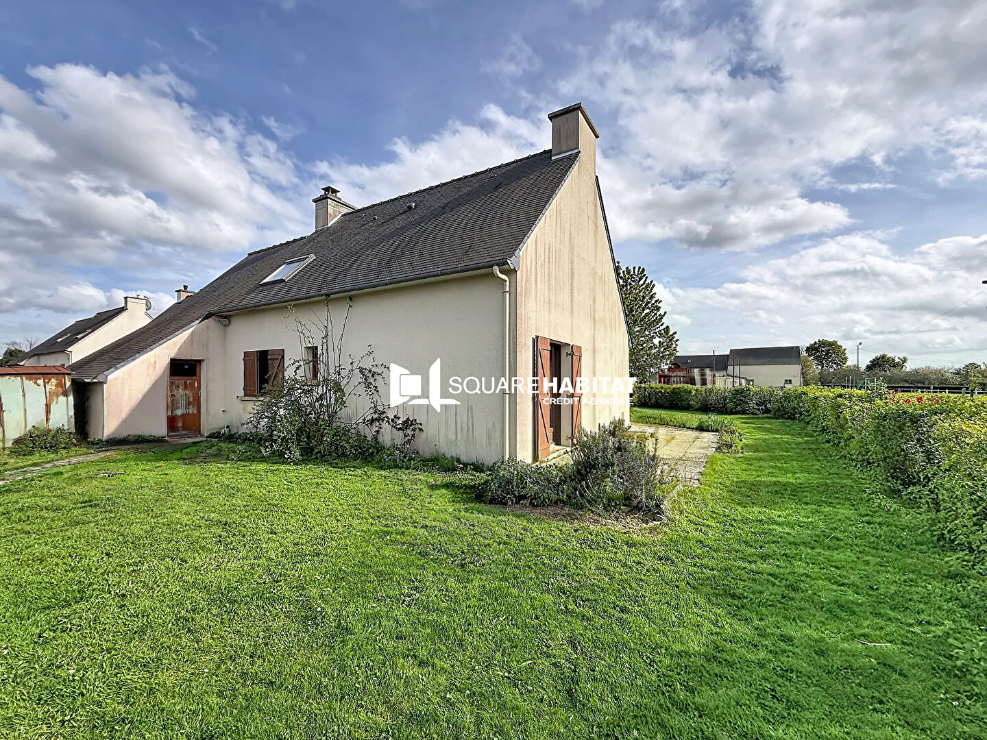 A VENDRE, TREGUEUX, 900m du bourg, maison des années 70 (107m2 habitables), à rénover, sur 512m2 de terrain, comprenant en rez de chaussée surélevé : entrée avec placards, cuisine aménagée, pièce de vie (32.50 m²), bureau et wc ; au 1er étage : palier, trois c...