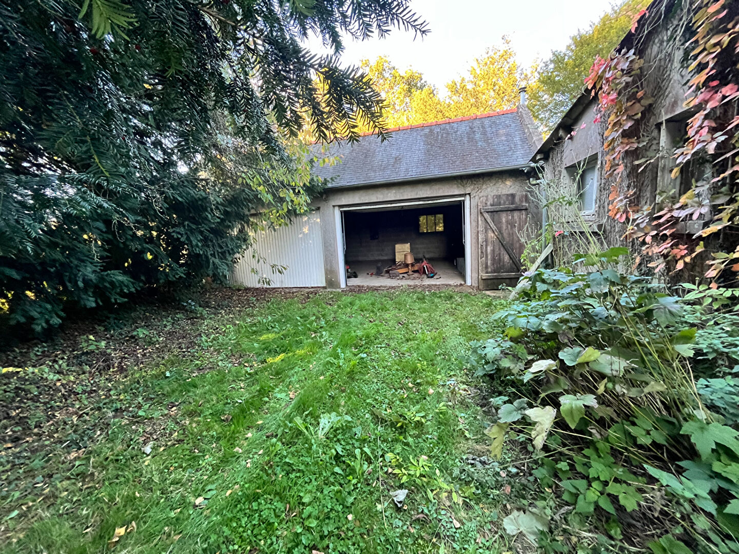 PLANGUENOUAL : En campagne, charmante maison en pierres à rénover, avec un beau terrain clos et sans vis à vis comprenant : entrée sur salon, cuisine, wc, salle d'eau. Garage attenant. Beau terrain d'environ 748 m².