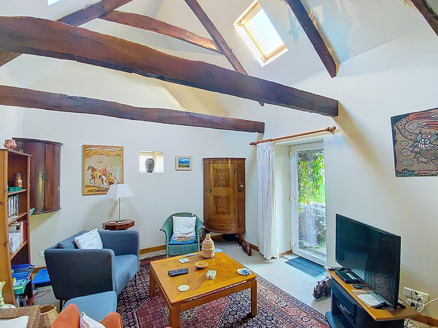 Elle se compose d une grande pièce de vie avec cheminée , une chambre, une cuisine, un bureau avec une mezzanine, une salle de bains avec wc et un cellier.
