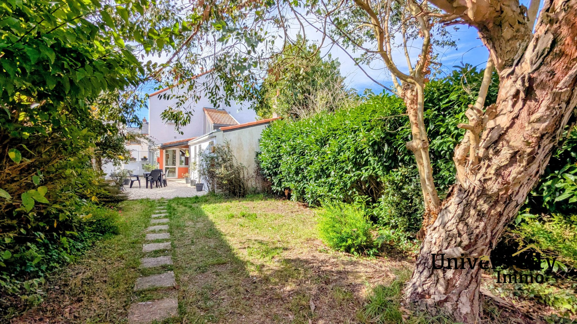 Située en plein bourg de Couëron, cette maison pleine de charme vous séduira par ses volumes et son joli jardin clos et arboré !
