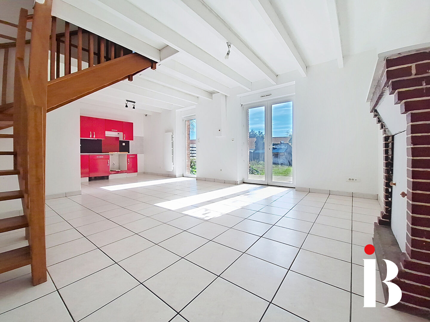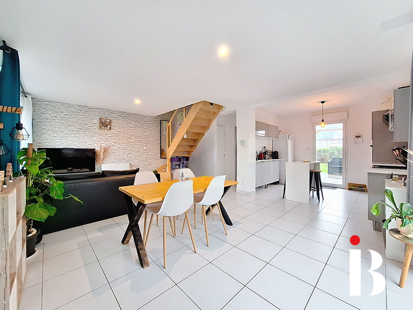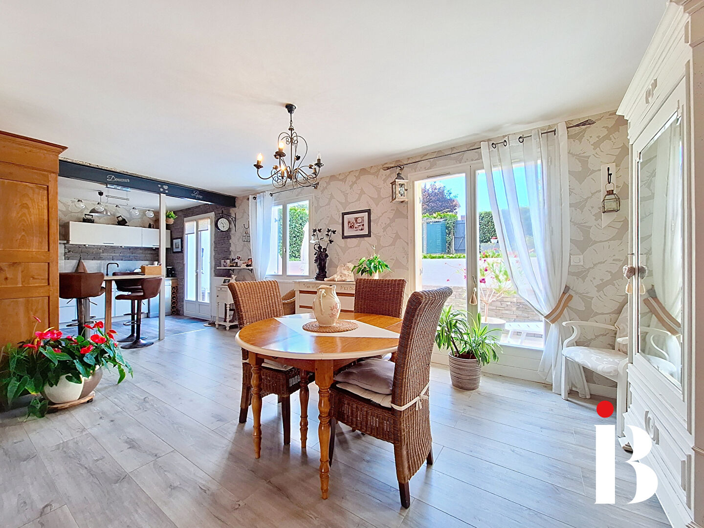 Elle propose un lumineux salon-séjour avec cheminée pouvant facilement s'ouvrir sur la cuisine aménagée et équipée, b...