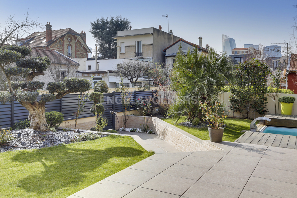 Au sein d'une résidence privée de 3 maisons, Engel & Völkers vous propose une maison contemporaine style Mansart de 260m² baignée de lumière, édifiée sur deux niveaux et un sous-sol avec fenêtres en cour anglaise, entourée d'un grand jardin.