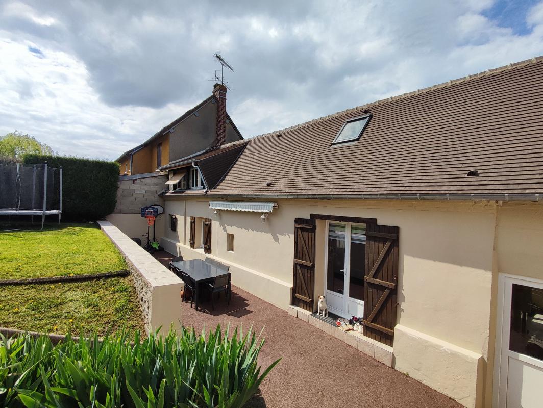 Proche de Courcelles Les Gisors, dans un village avec école, maison ancienne rénovée avec de beaux volumes, offrant en RDC : Salle à manger, cuisine aménagée et équipée, salon, 1 chambre avec dressing et wc, salle de bains avec baignoire + douche, wc indépenda...