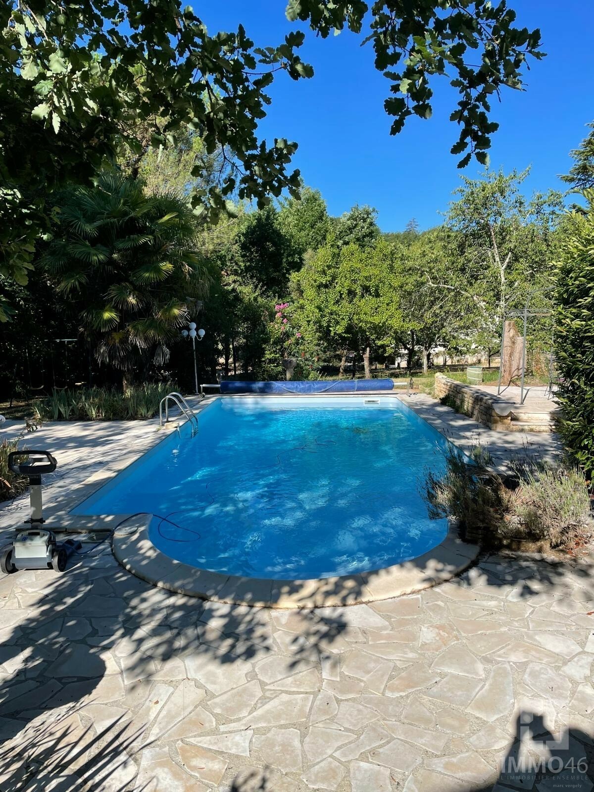 L'agence IMMO46 vous propose à la vente, dans un environnement boisé, cette maison atypique de 154m² habitables offrant 5 chambres. Implantée sur un beau parc arboré de 1796m², vous serez séduits par sa véranda et sa piscine couverte. Idéalement située av...