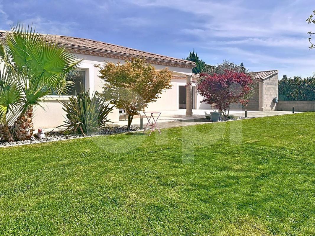 Maison de plain pied de 2013 environ 145 m² habitables avec garage et jardin paysagé de 1716m2 clôturé