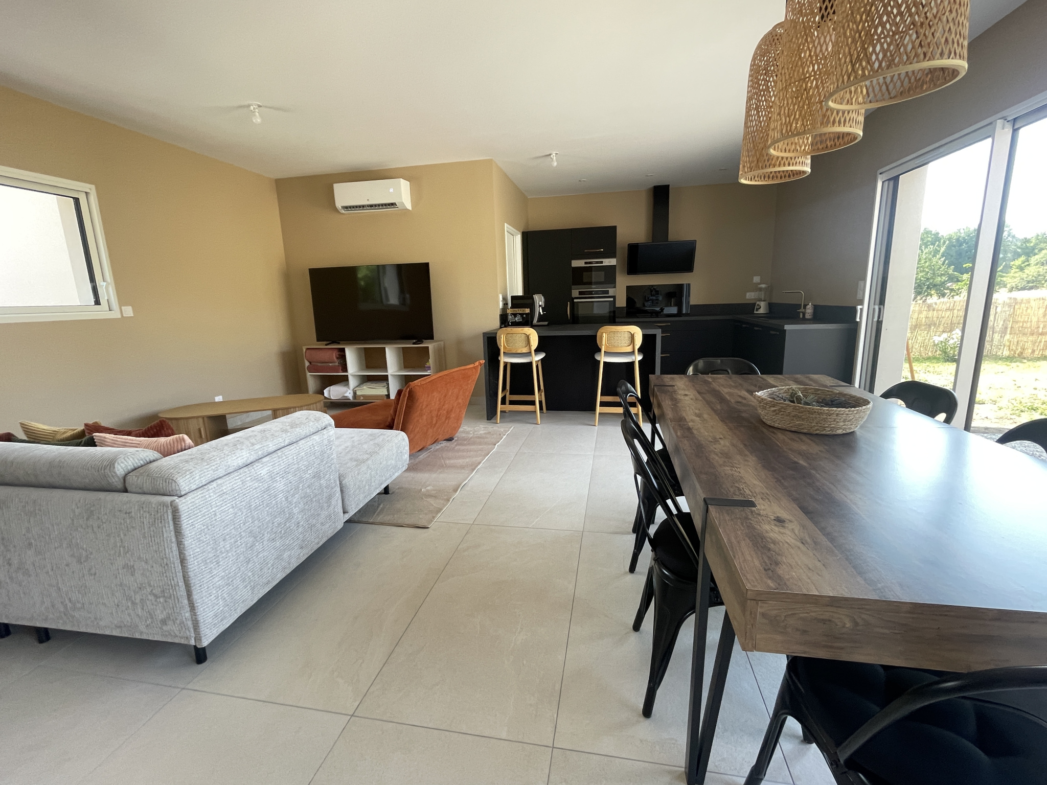 A deux pas de BERGERAC, maison de plain-pied de 102m2 habitables sur un terrain d'environ 700m2. Elle se compose d'une entrée, d'un vaste séjour de 45m2 avec cuisine ouverte et toute équipée, d'un cellier, de trois chambres dont une suite p...