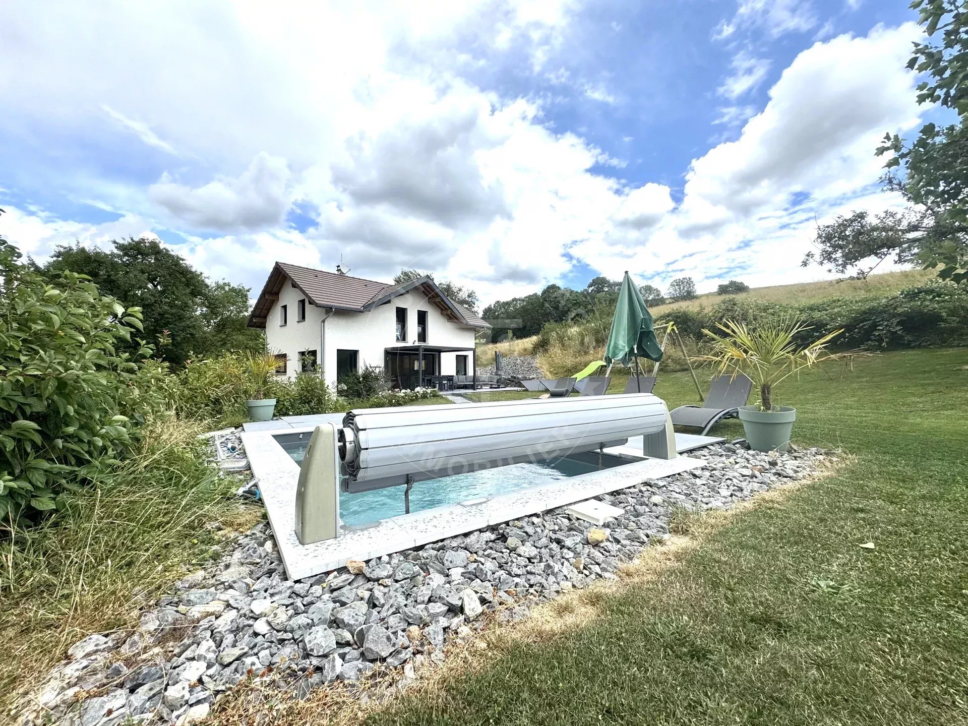 L’Agence Tour des Lacs vous propose cette superbe maison contemporaine de 152 m², située à Menthonnex-en-Bornes, entre Annecy et Genève, dans un écrin de verdure, au calme absolu.
