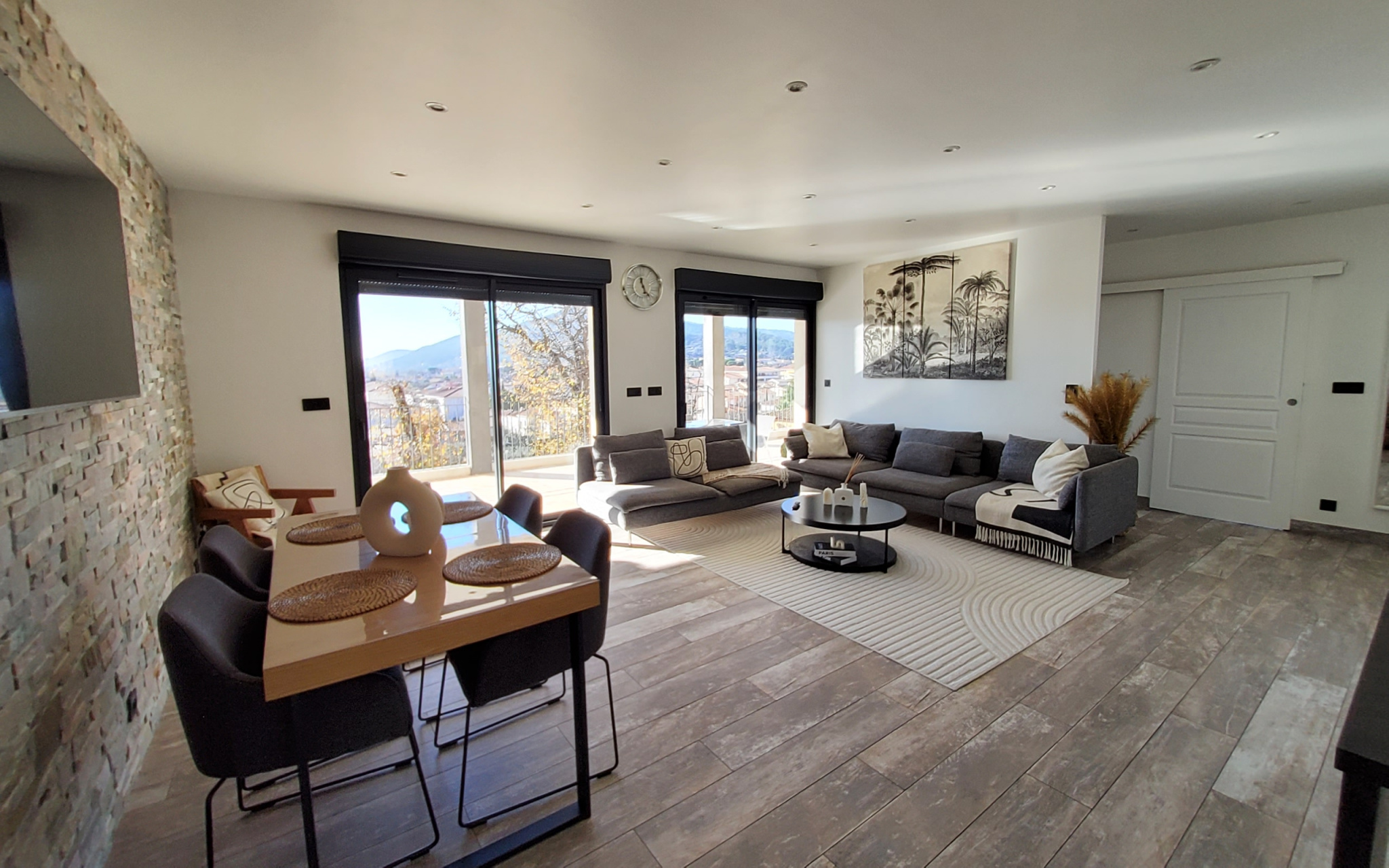 Hall d'entrée, vaste séjour avec cuisine ouverte d'environ 50m2 ouvrant sur terrasse panoramique, terrasse avec jacuzzi, 1 suite parentale avec ...