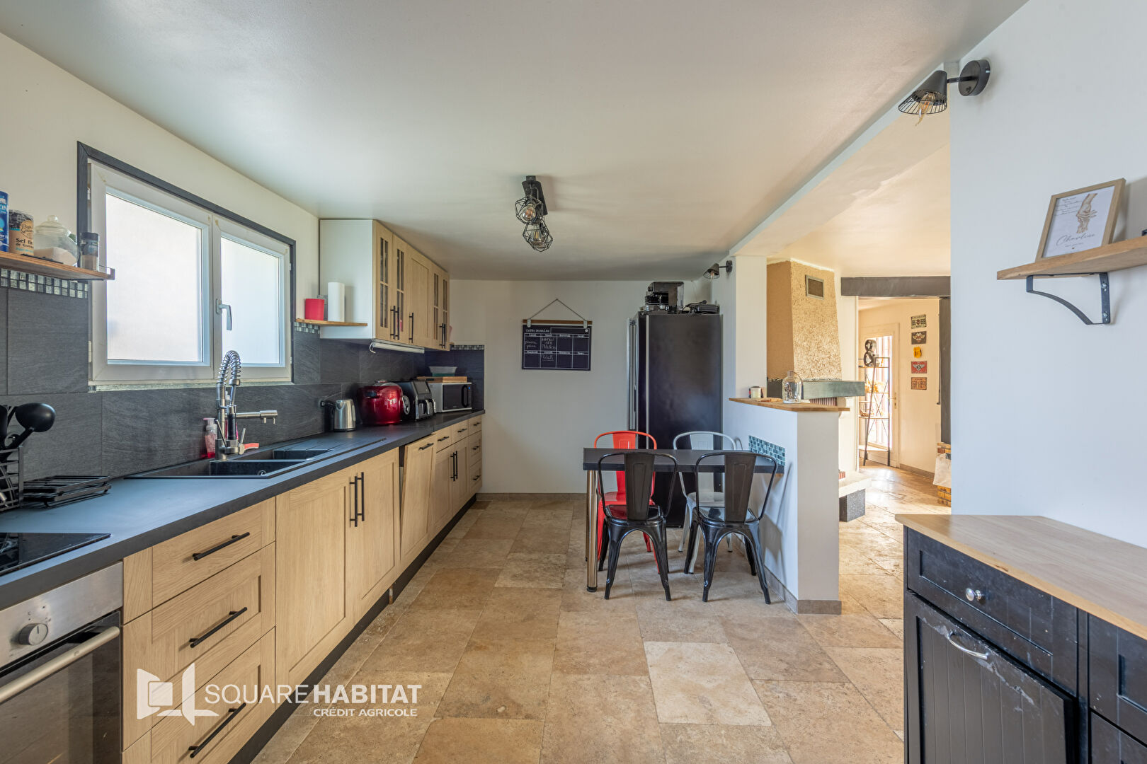 Maison d'habitation sur un terrain clos et sans vis à vis dans un quartier calme composée : d'une entrée, une cuisine aménagée ouverte sur la salle à manger avec cheminée ( insert), salon, veranda, salle de douche, wc