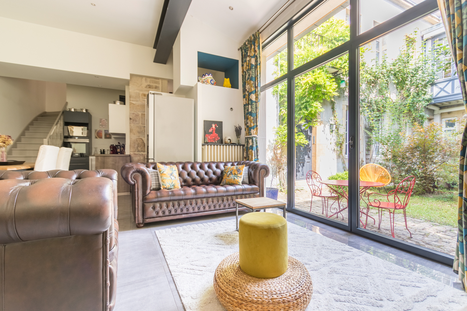 Cette jolie maison au fond d'une impasse au calme avec sa cour et son beau jardin comporte: