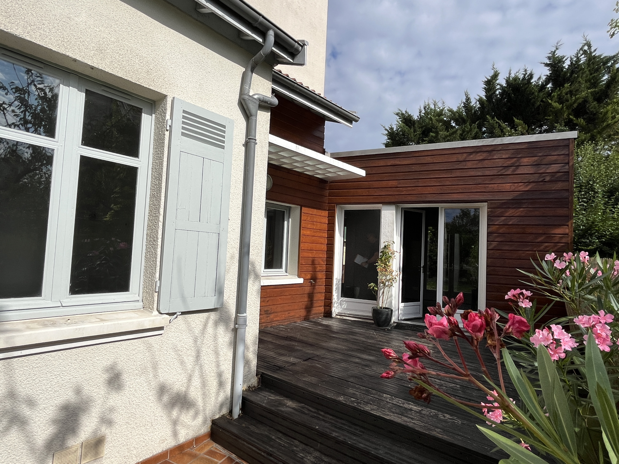 Jolie maison alliant le charme de l'ancien et du moderne, bénéficiant d'une extension de plain-pied sur terrain parfaitement aménagé.