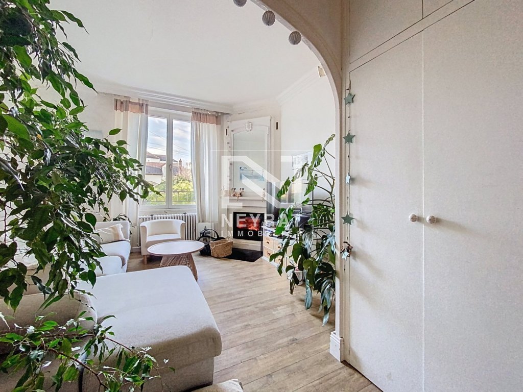 Salon parquet avec cheminée et belle hauteur sous plafond exposé SUD,