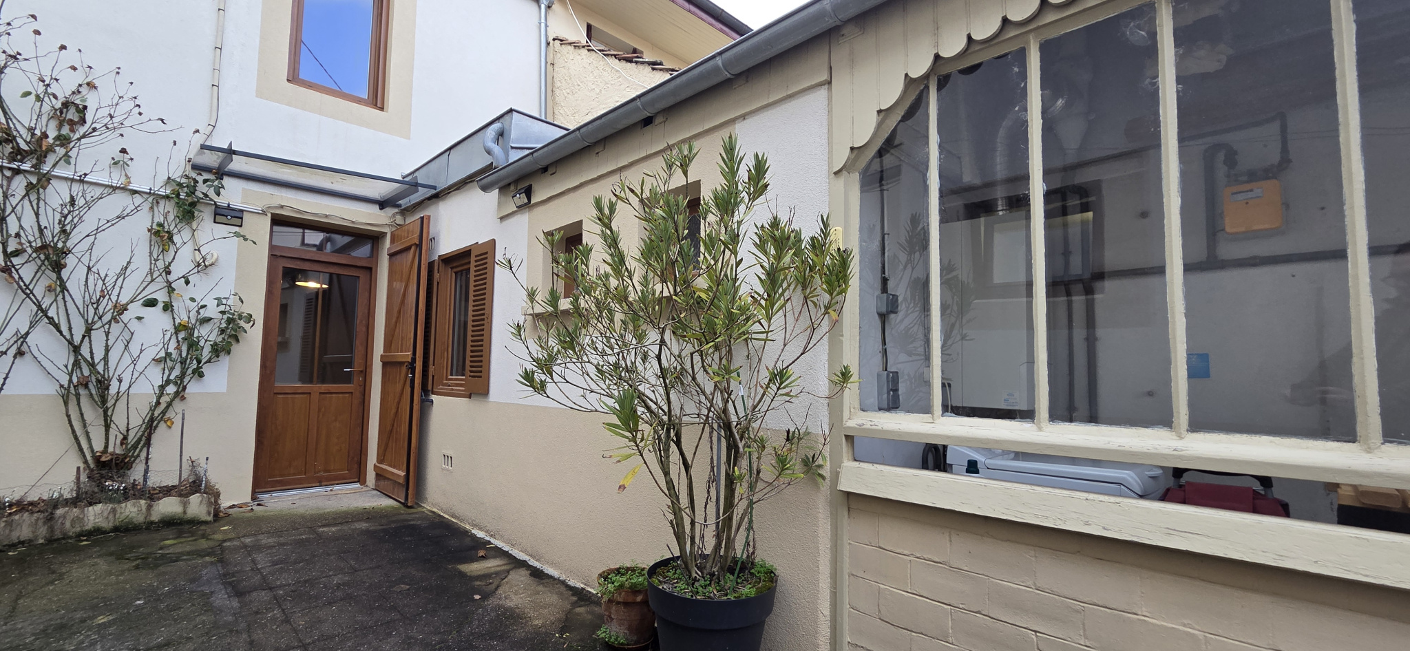 Maison de ville avec grande cour. Belle pièce à vivre, quatre chambres, trois salles d'eau. A découvrir