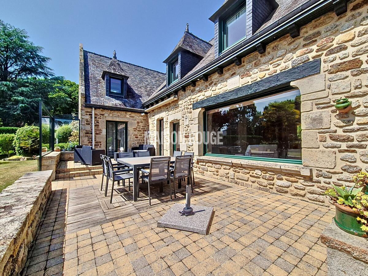 À vendre Chez Christelle Mesnage Immobilier, à 4km de Dinan, magnifique maison en pierre offrant sur 211m² habitables : un hall d'entrée monumental avec grande hauteur de plafond et poêle à bois, un vaste séjour salle à manger donnant accès à la terrasse,...