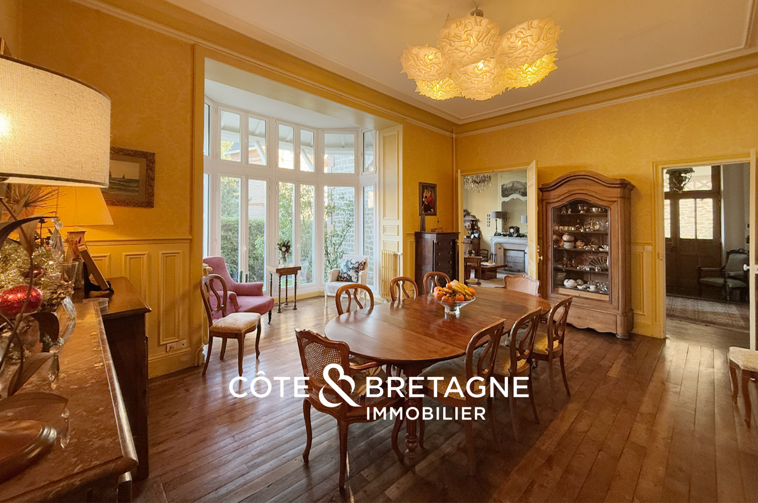 À vendre chez Christelle Mesnage ? DINAN CENTRE-VILLE. Belle maison bourgeoise de 483m² habitables offrant : au rez-de-chaussée : un vaste hall d'entrée, un wc avec lave-mains, un spacieux salon avec cheminée donnant sur la véranda/jardin d'hiver idé...