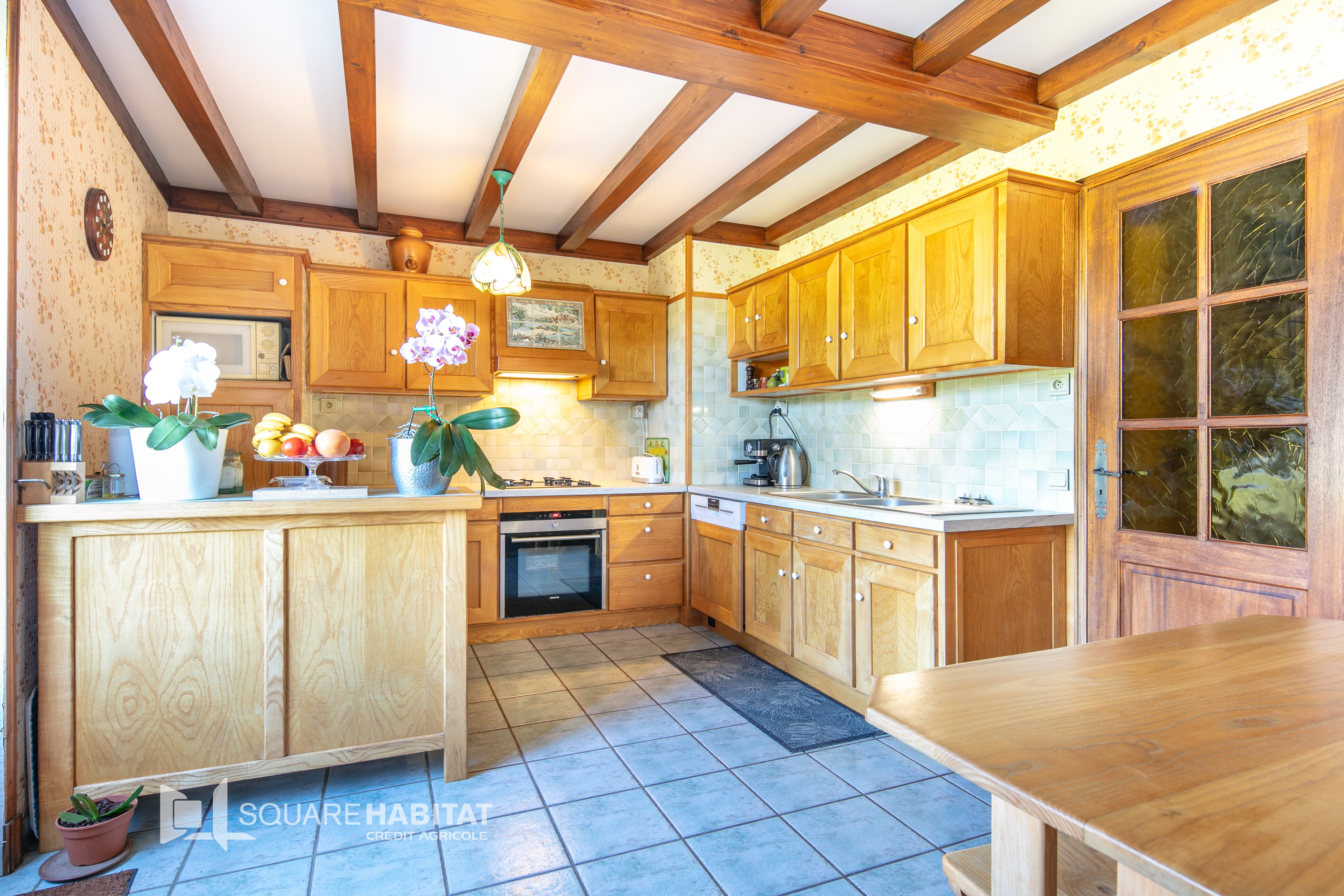 Une cuisine ouverte sur le séjour, une buanderie, une salle d'eau avec WC.
