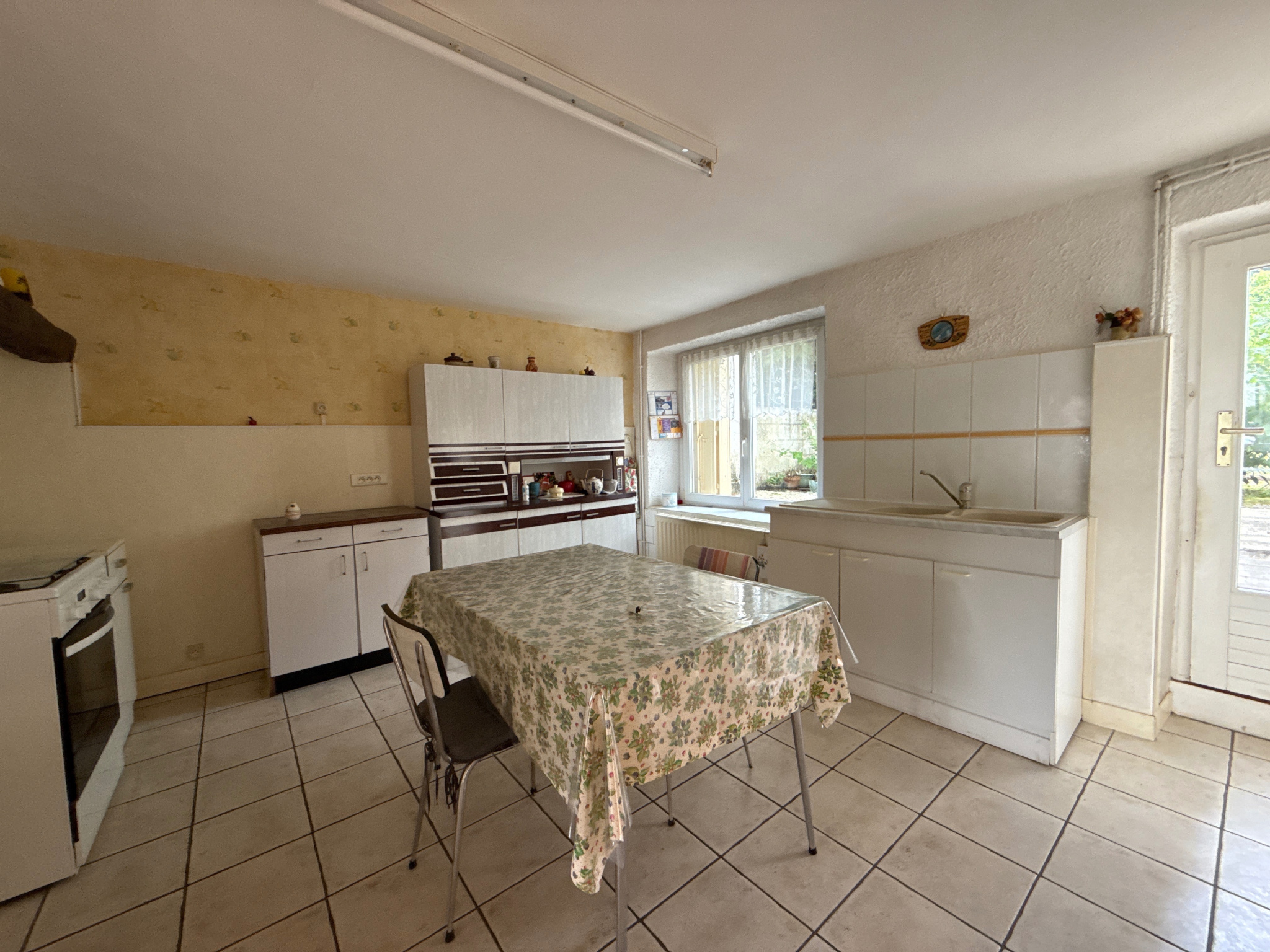 Réhabiliter cette maison sera un véritable plaisir, charme d'antan, ancienne tomettes à l'entrée, boiseries au salon,