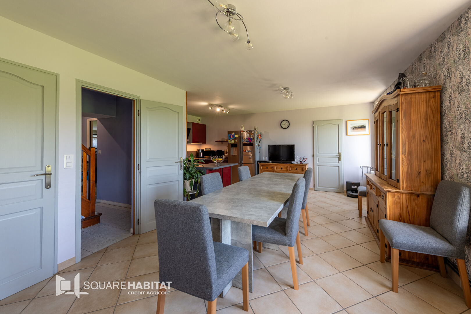 * Au rez-de-chaussée : entrée, cuisine ouve...