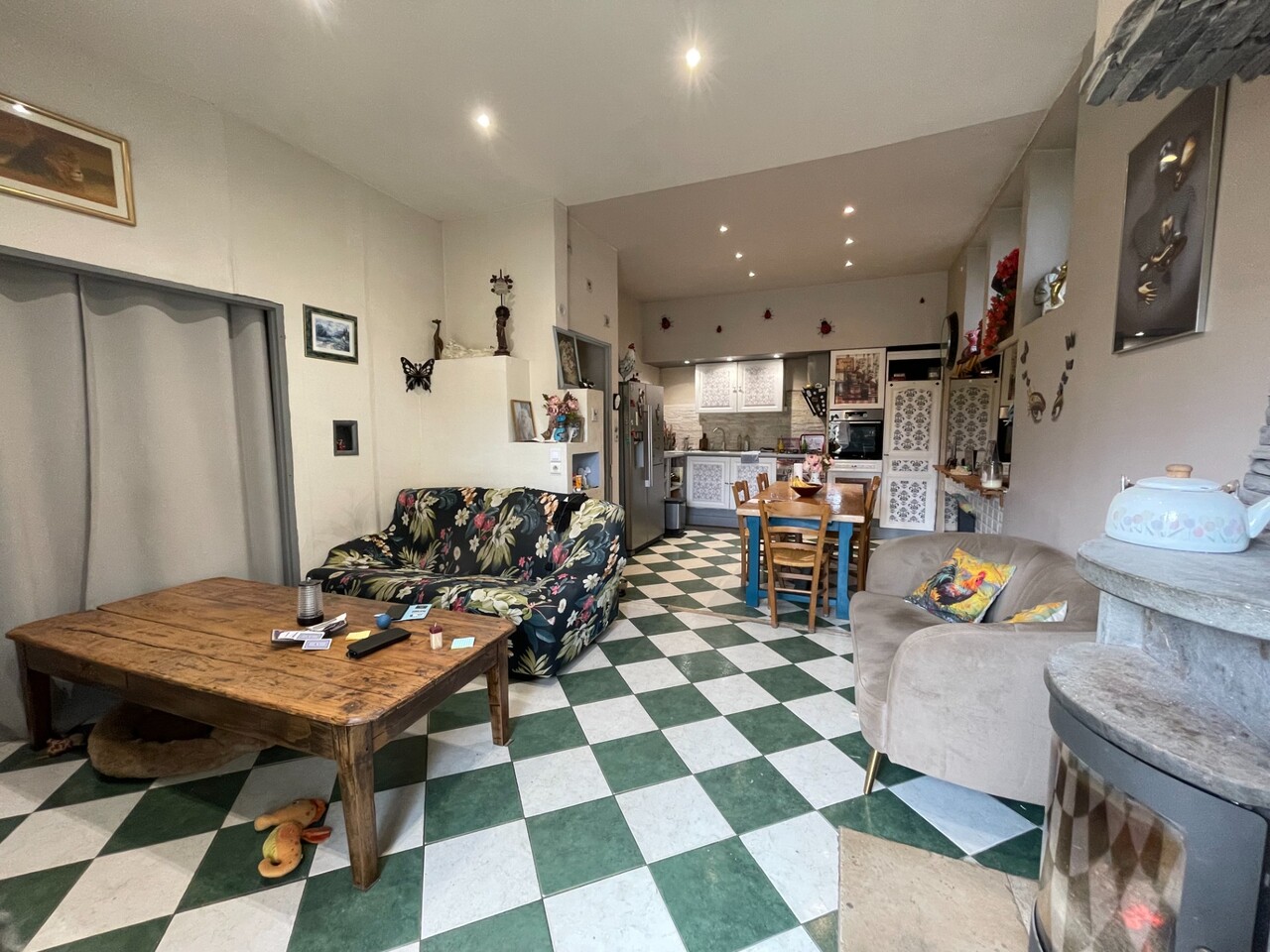 À l'avant de la maison, le rez-de-chaussée supérieur est composé d'une pièce à vivre avec un coin cuisine refait en ...