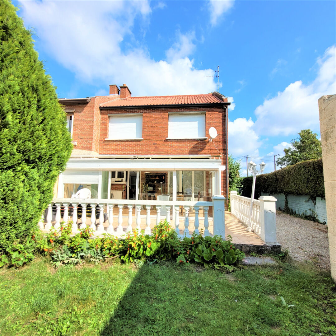 Maison semi-individuelle de type année 60 à rafraîchir, bâti sur 761m², en retrait de rue, offrant un hall d'entrée, un wc, une cuisine équipée, un séjour traversant et lumineux, ainsi qu'une véranda. A l'étage, le palier dessert 3 chambres et ...