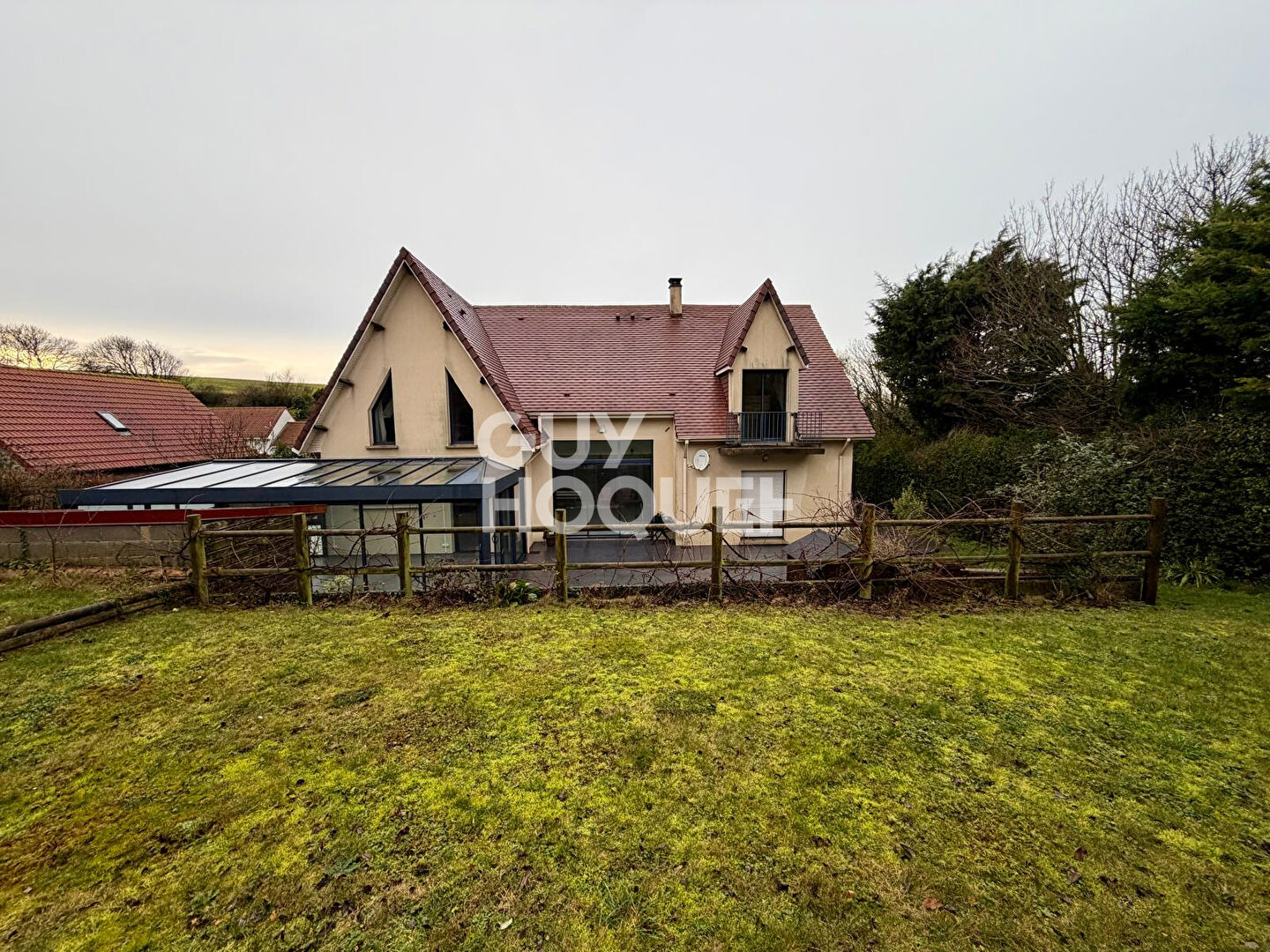 Une pièce de vie lumineuse de près de 90 m² avec feu à bois, ouverte sur une véranda de 30 m²