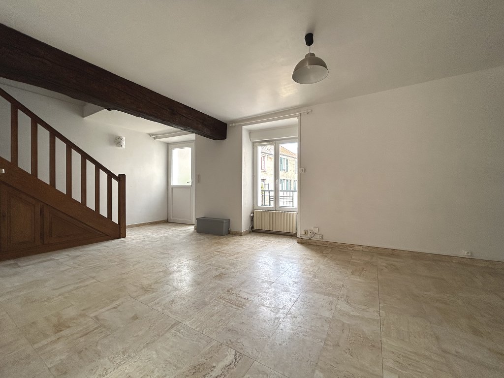 Maison de ville comprenant au rez-de-chaussée entrée avec placard, WC sous l'escalier, séjour de 23 m² avec cheminée donnant sur une cour commune, cuisine ouverte...