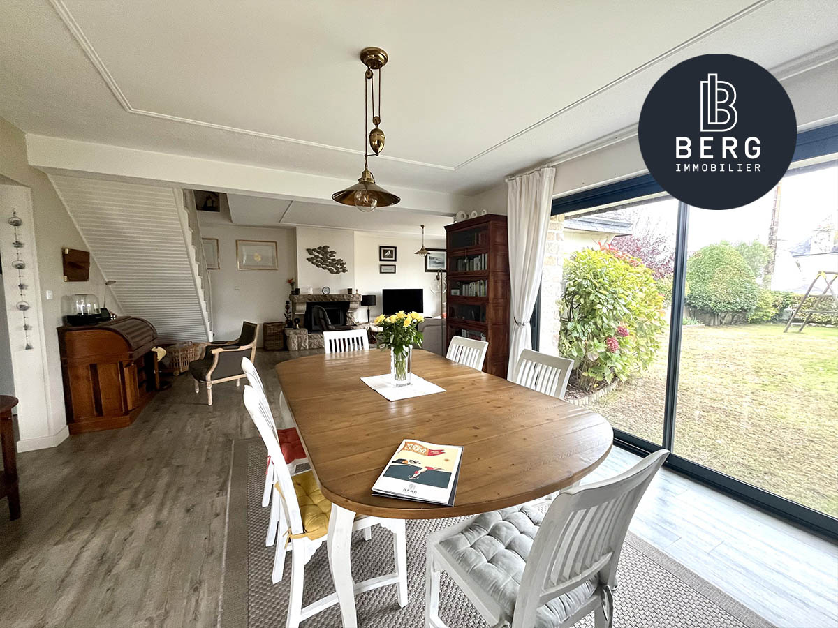 VUE IMPRENABLE sur la RIA d'ETEL pour cette maison aux volumes généreux de 236m² avec son TERRAIN en zone constructible attenant de 2359m². Construction traditionnelle de 1972 offrant entrée donnant sur petit salon, salon, salle à manger, cuisine, cellie...