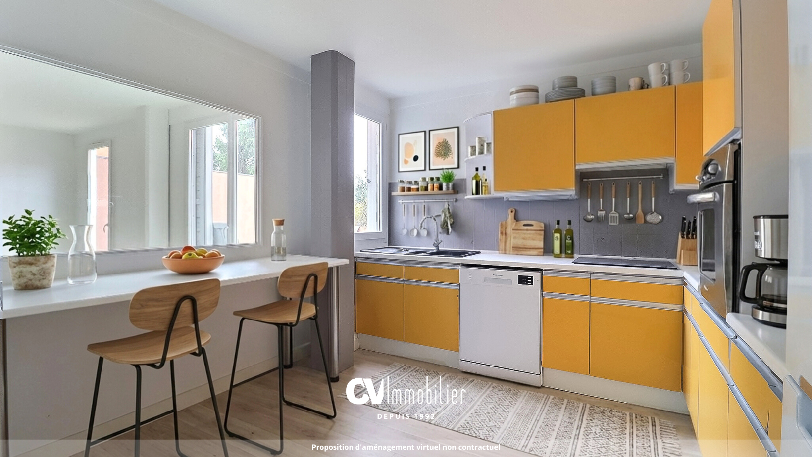 Entrée, cuisine aménagée et équipée ouverte sur un vaste espace de vie de...