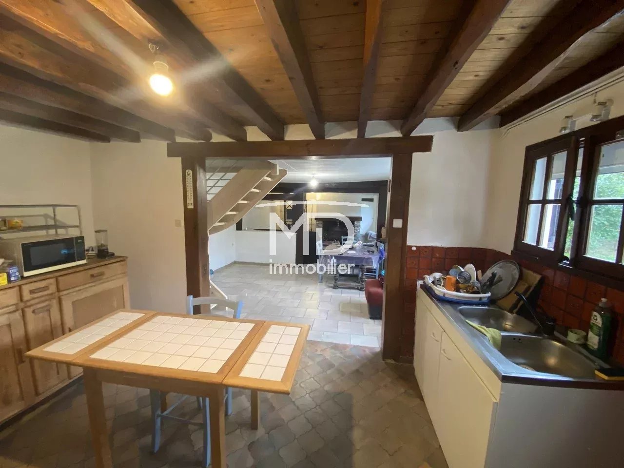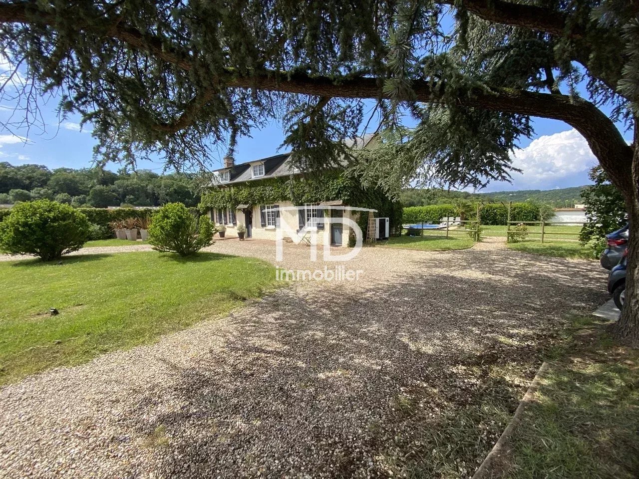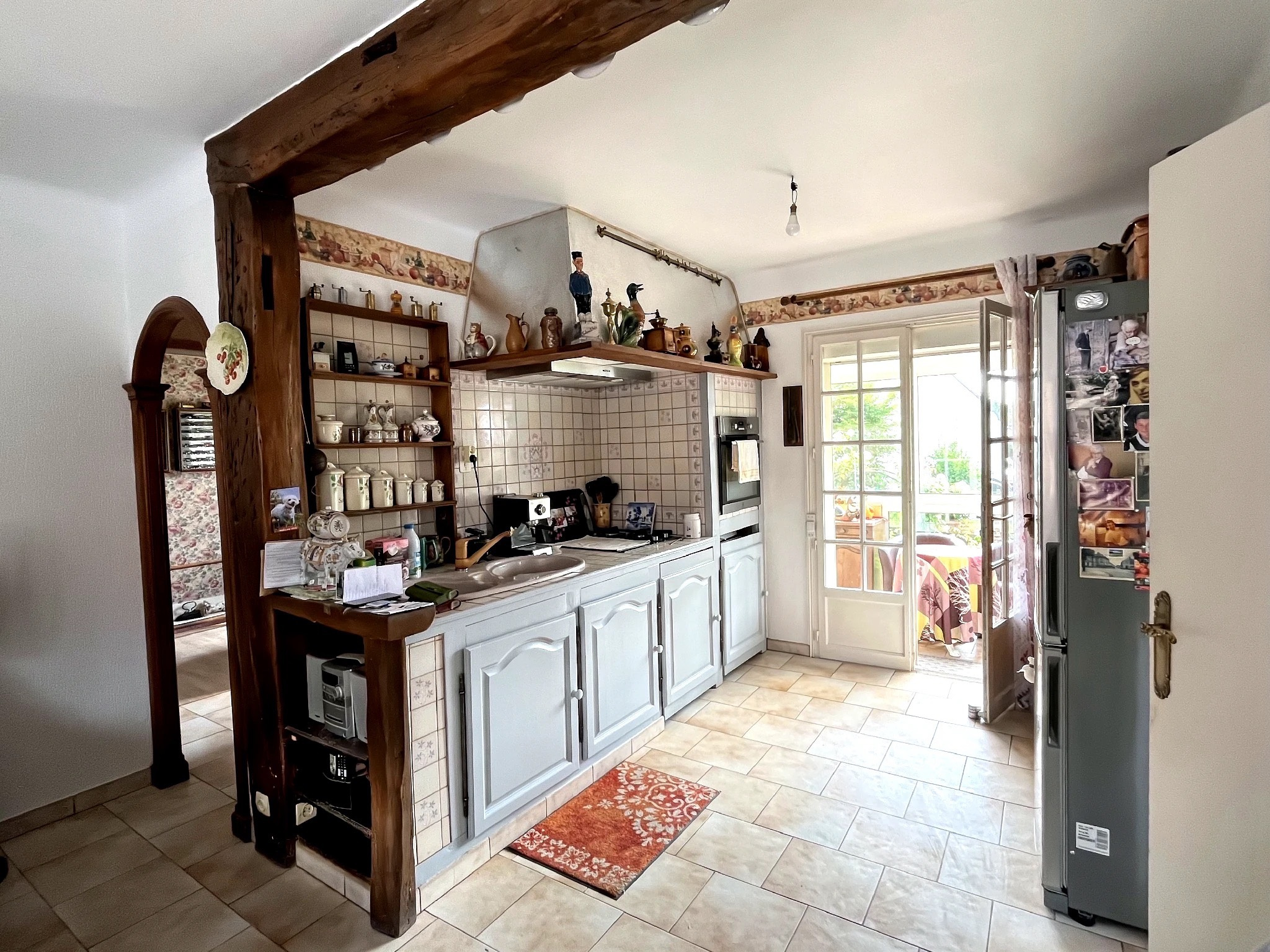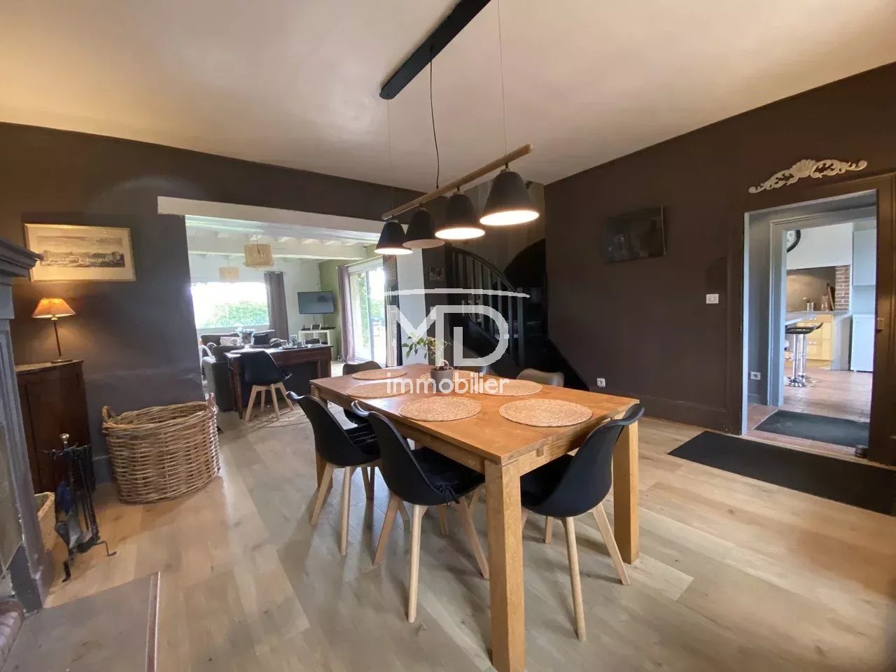 Jolie maison ancienne édifiée sur un beau terrain arboré et comprenant au rez-de-chaussée : entrée de 10.45 m2, séjour de 22 m2 avec cheminée, séjour de 39.7 m2, cuisine de 13.5 m2, pièce, salle de douche de 8.5 m2, wc 3.5 m2. À l'étage : ...