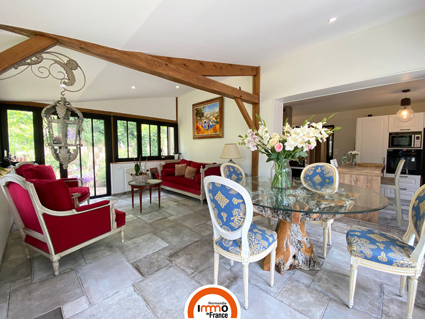 À 10 minutes d’Évreux et de la gare SNCF, secteur Normanville, maison normande entièrement rénovée, sur un terrain de 1662m² clos de murs sans vis-à-vis, avec piscine chauffée et 2 dépendances dont une de 70m².