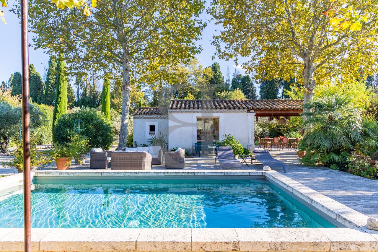 Proche Eygalières – Propriété authentique avec deux habitations indépendantes, parc paysager et piscine.