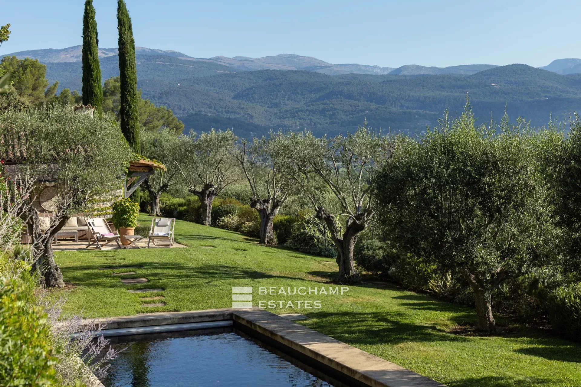 En position dominante à Fayence, dans un quartier résidentiel prisé, élégante propriété provençale de 380 m² habitables sur un terrain paysager avec vue panoramique. Elle se compose de 7 chambres en suite, d'un vaste séjour avec cheminée double foyer, d...
