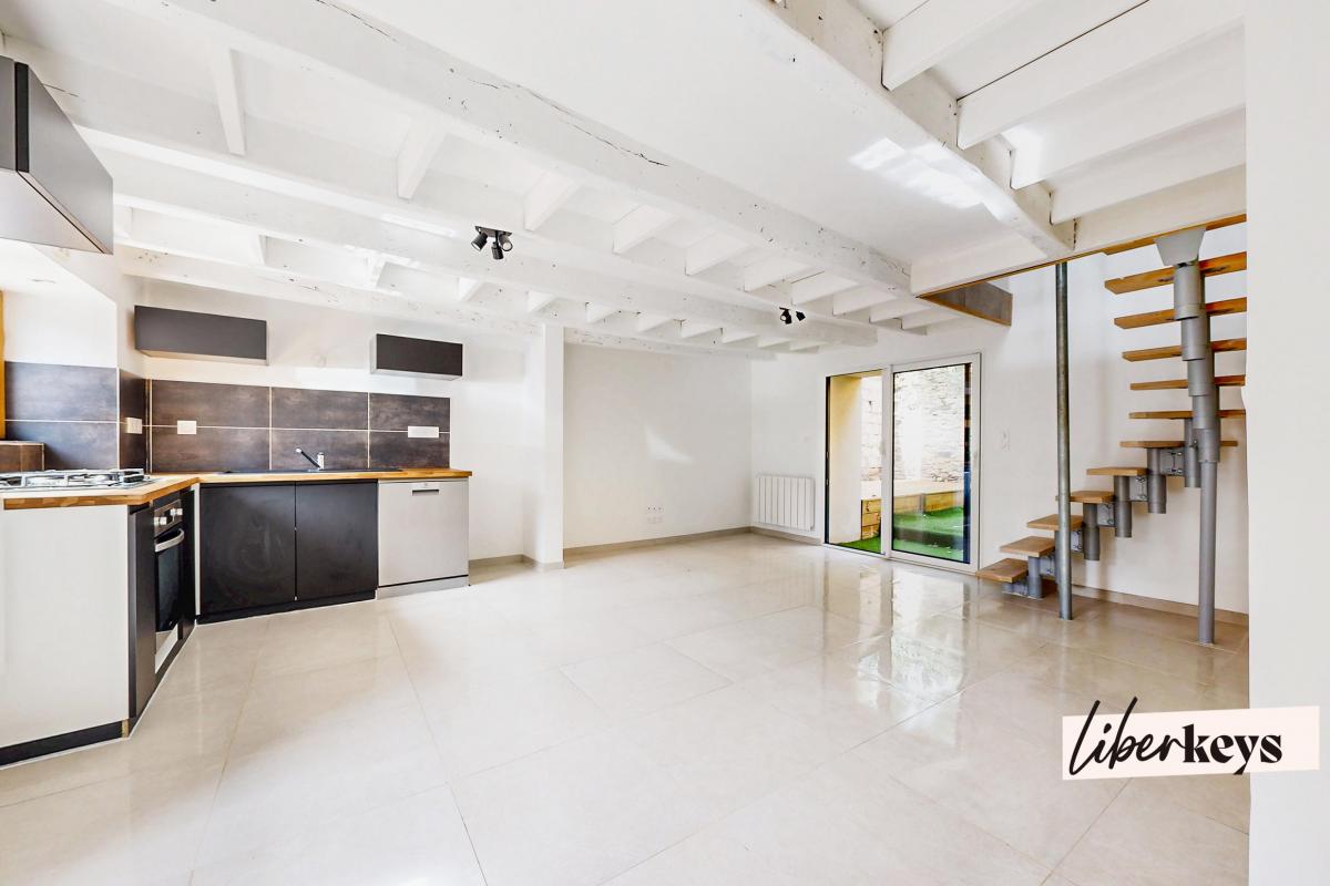 Cette maison de bourg mitoyenne, construite en 1948, a su conserver son charme d'antan entièrement rénovée avec goût...