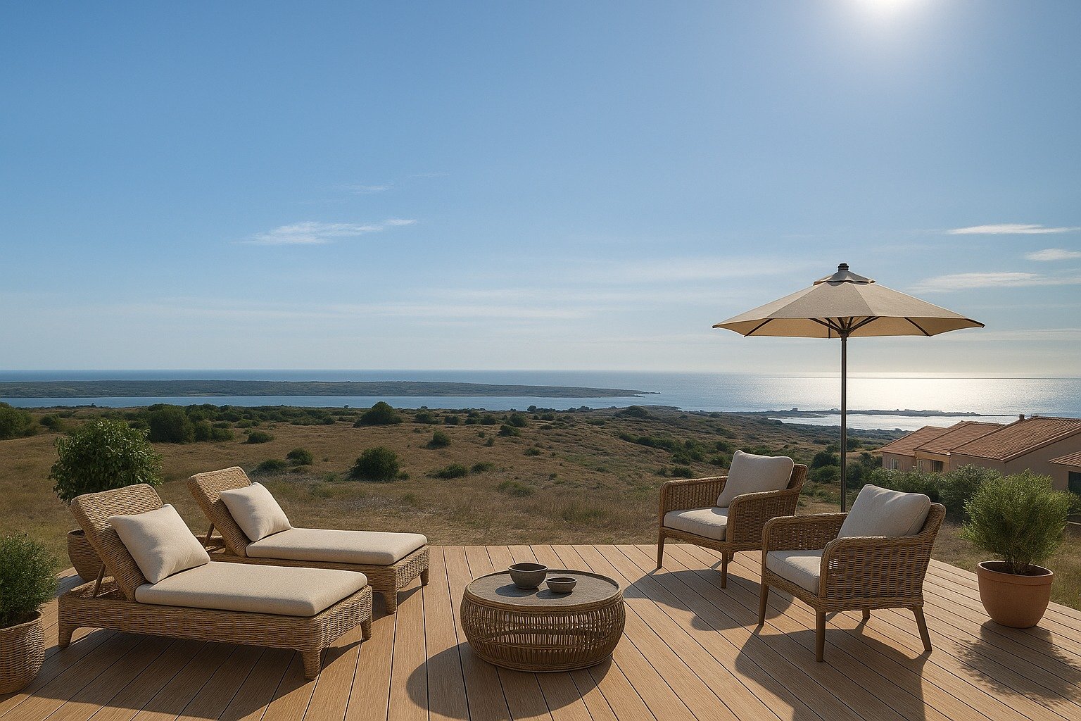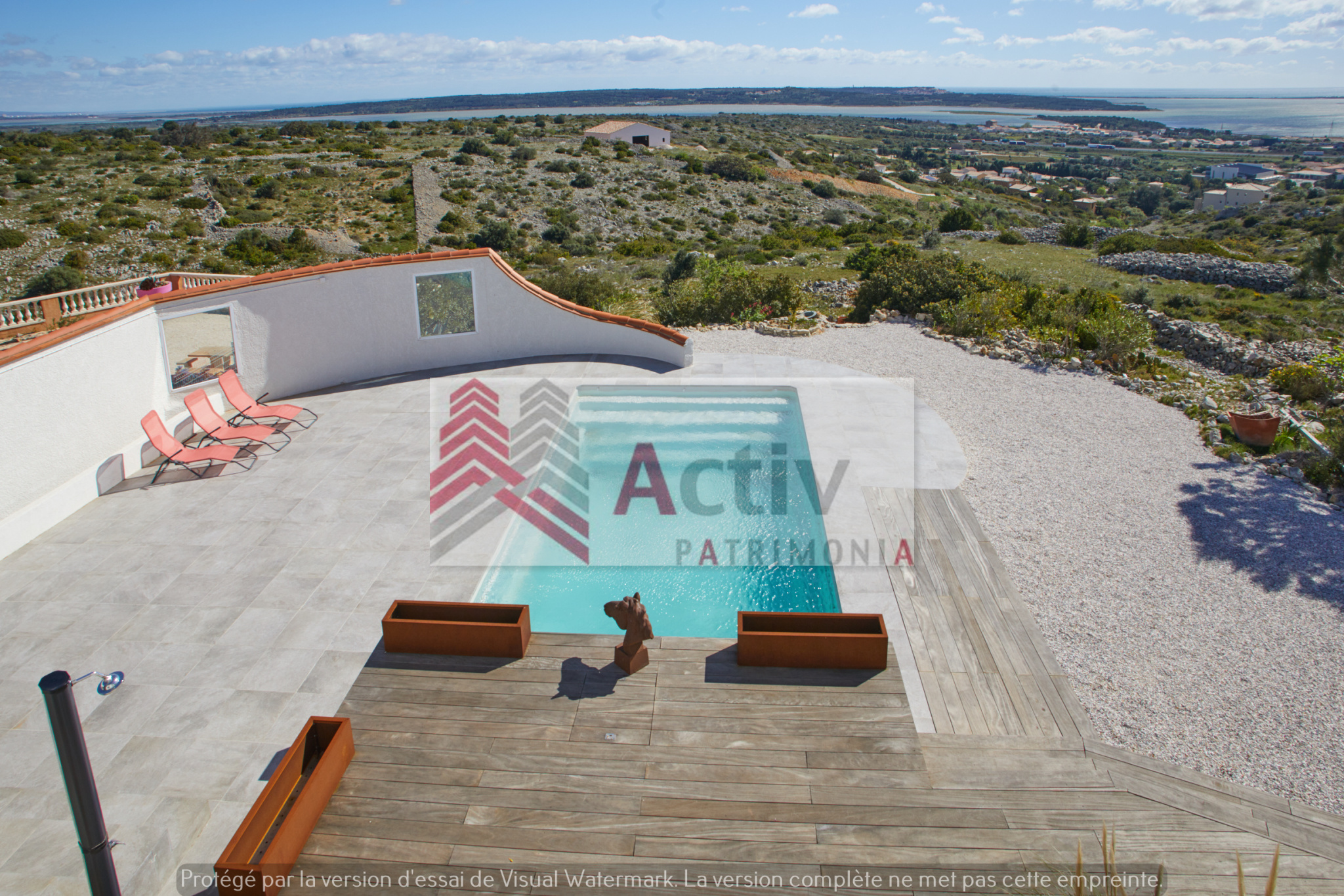 FITOU , sur le terrain le plus haut du village avec vue sur la mer et l'étang, villa d'architecte aux grands volumes. Séjour / SAM / cuisine de 44 m² donnant sur la terrasse avec sa vue panoramique sur la mer et l'étang 3 grandes chambres dont...
