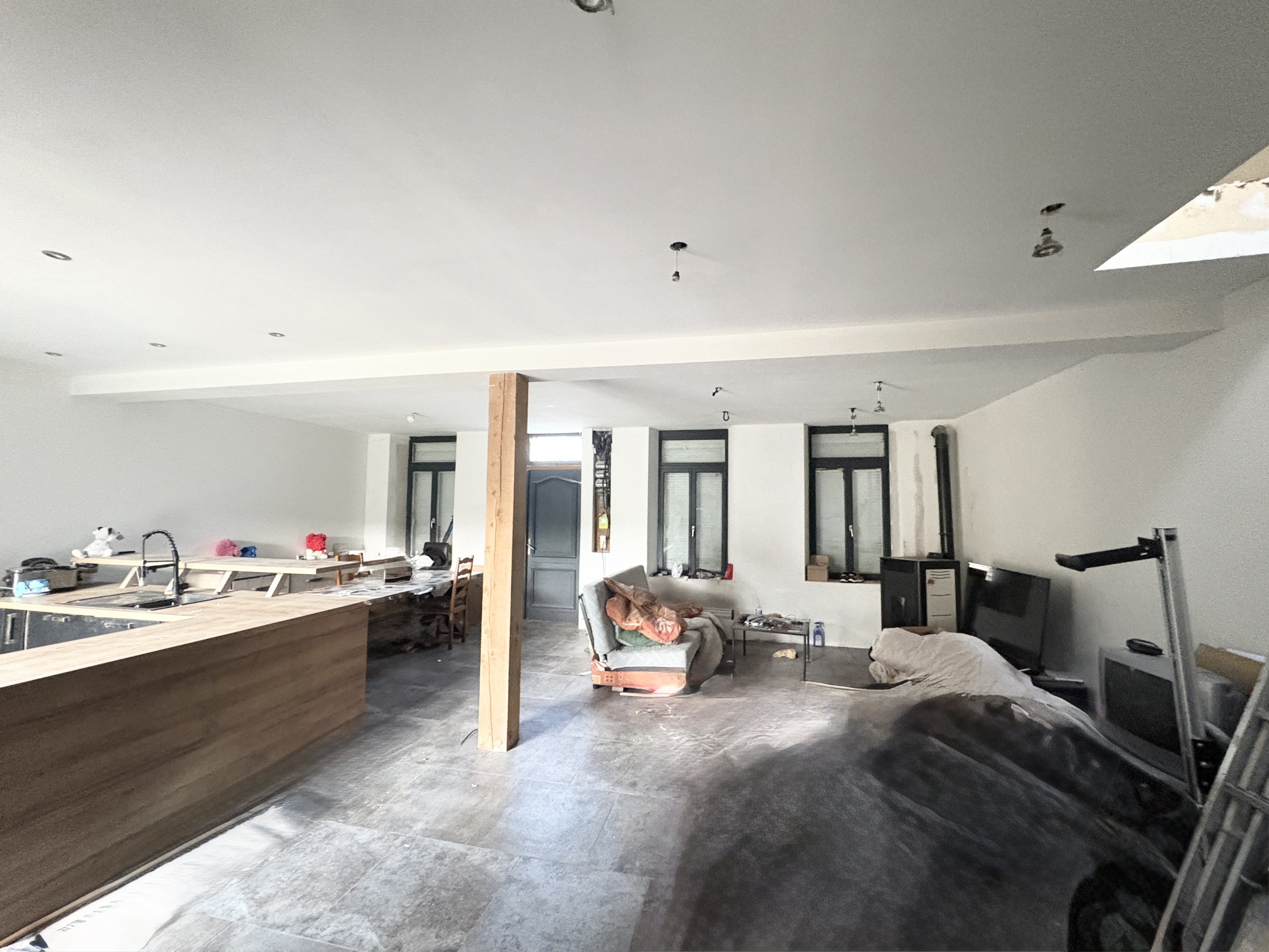 En exclusivité Facilimmo vous présente :Maison mitoyenne d'un coté, à finir de rénover, elle comprend une grande piéce à vivre de 50m2 avec cuisine équipée ouverte sur séjour/salon avec poéle à granulés, un couloir desservant une grande salle d'eau a...