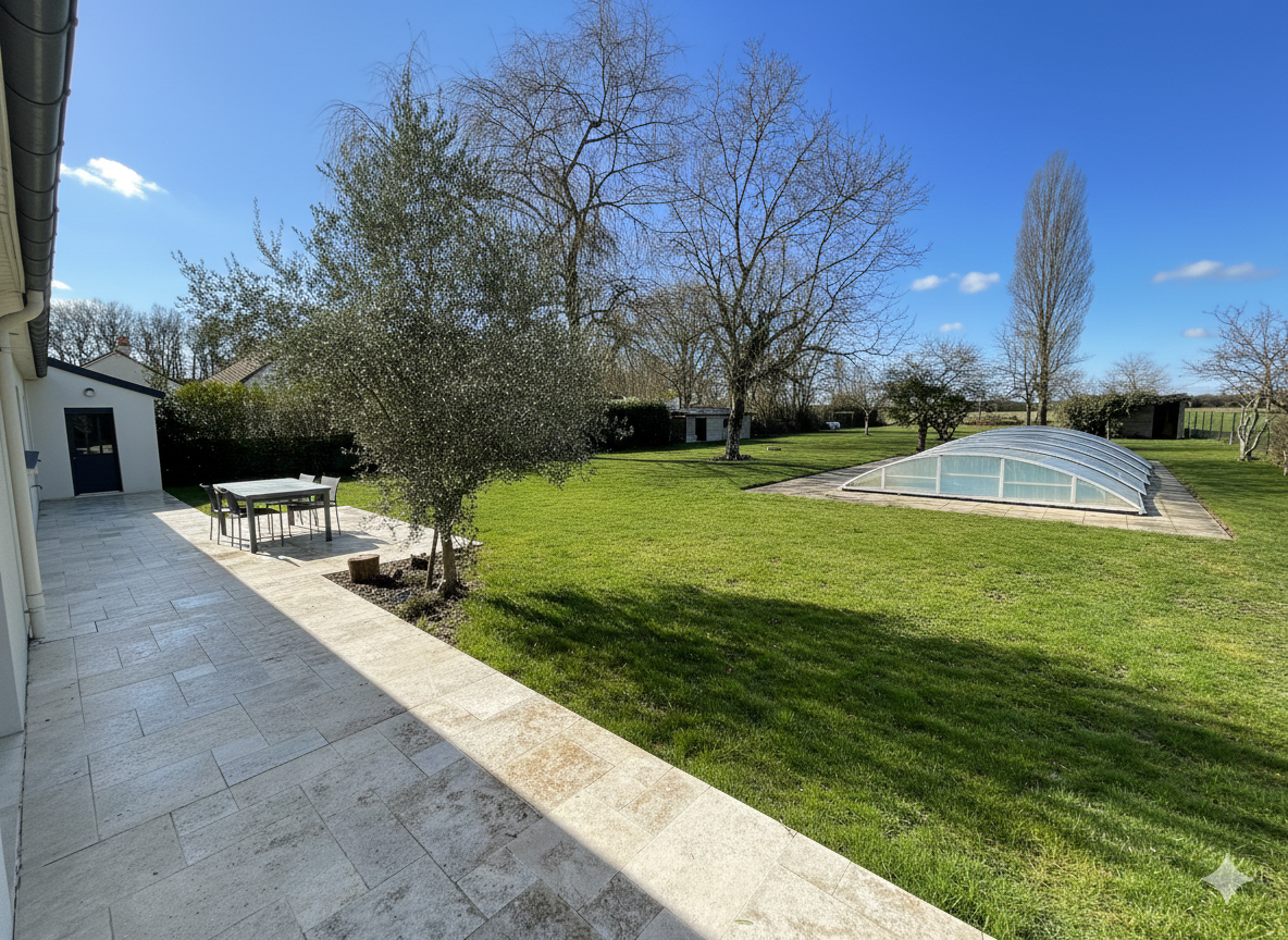 Aurélie Durier Immobilier vous propose cette charmante maison posée sur son terrain de plus de 3000 m2 située aux abords de Fondettes.