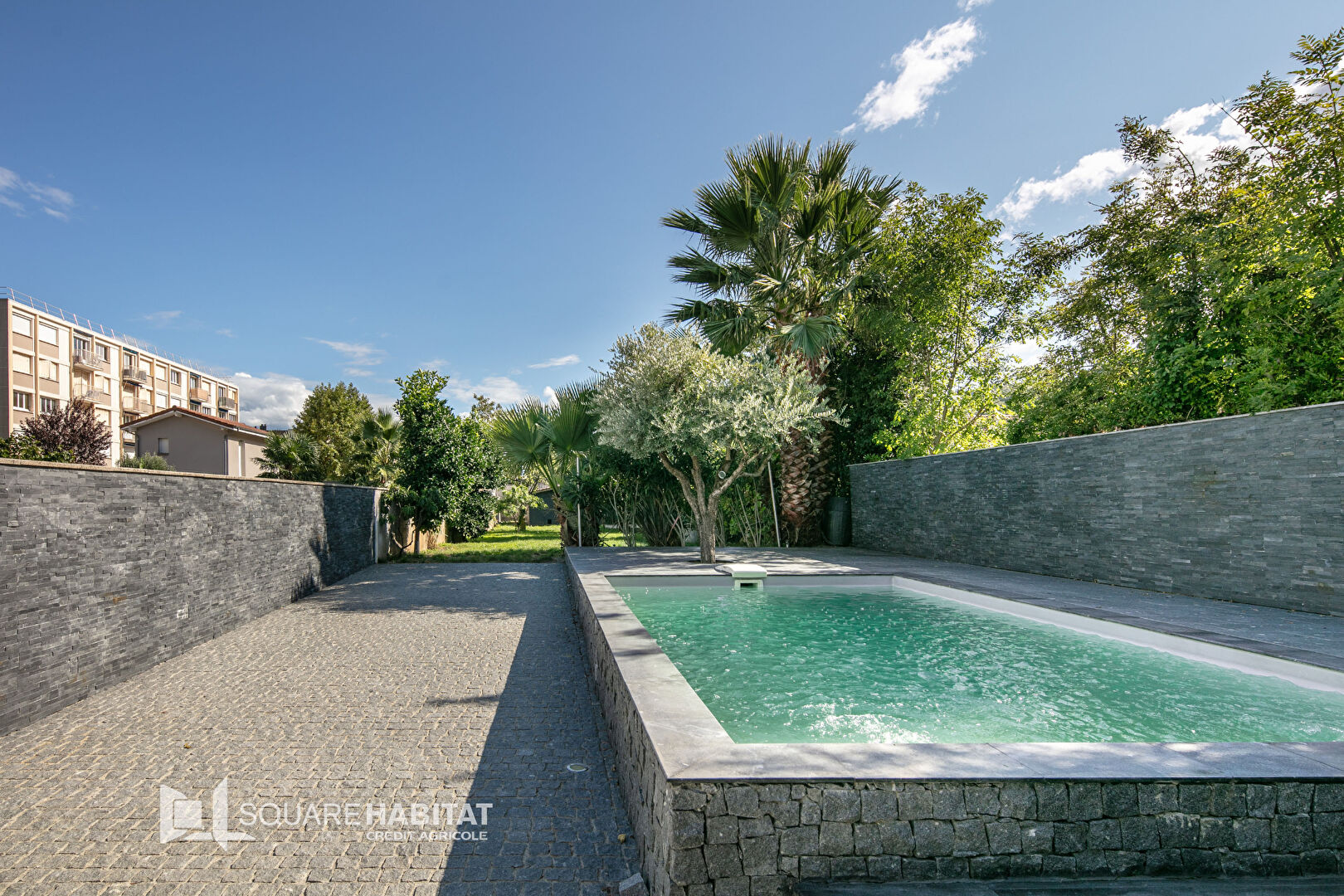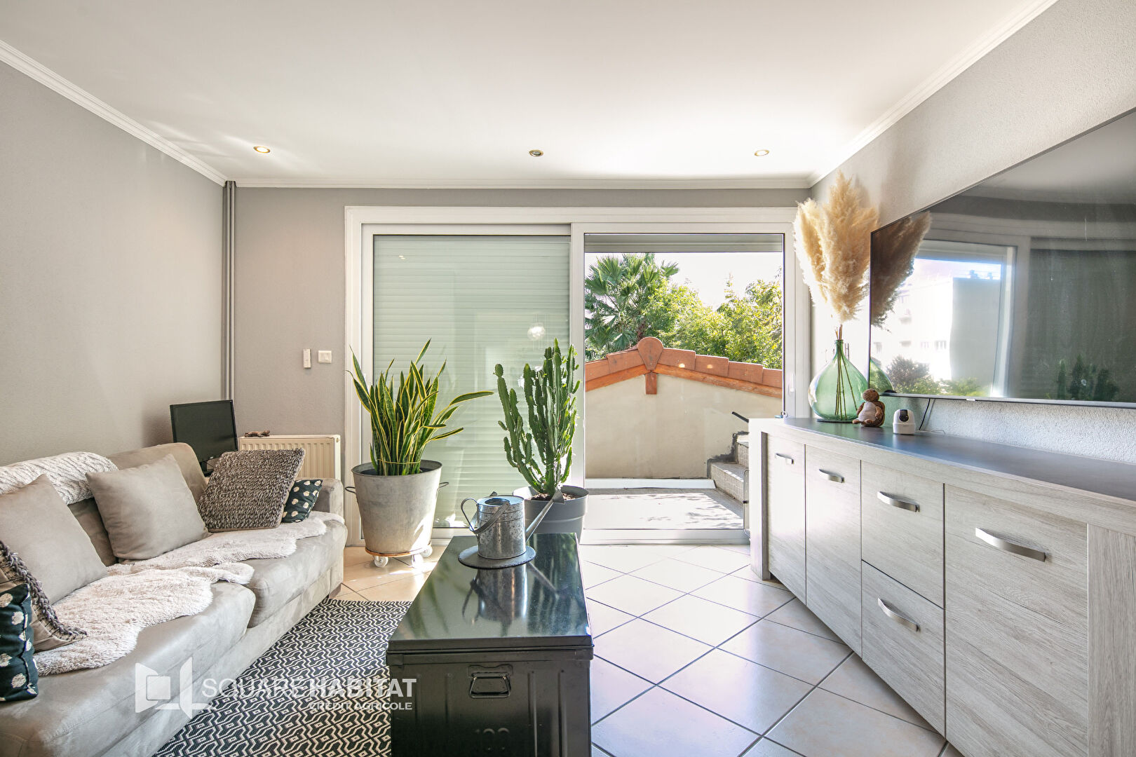 À l’entrée, un joli jardin arboré vous accueille, agrémenté d’une place de stationnement privative.