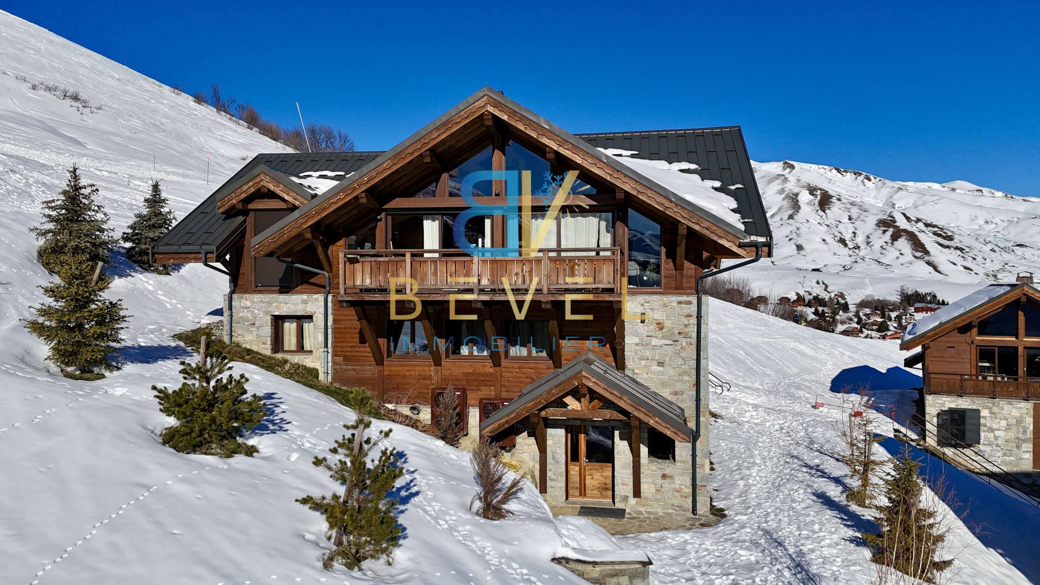 À VENDRE - CO-EXCLUSIVITÉ BEVEL IMMOBILIER (73) LA TOUSSUIRE / DOMAINE DES SYBELLES - CHALET DE PRESTIGE VISITE VIRTUELLE ET DRONE SUR DEMANDE.