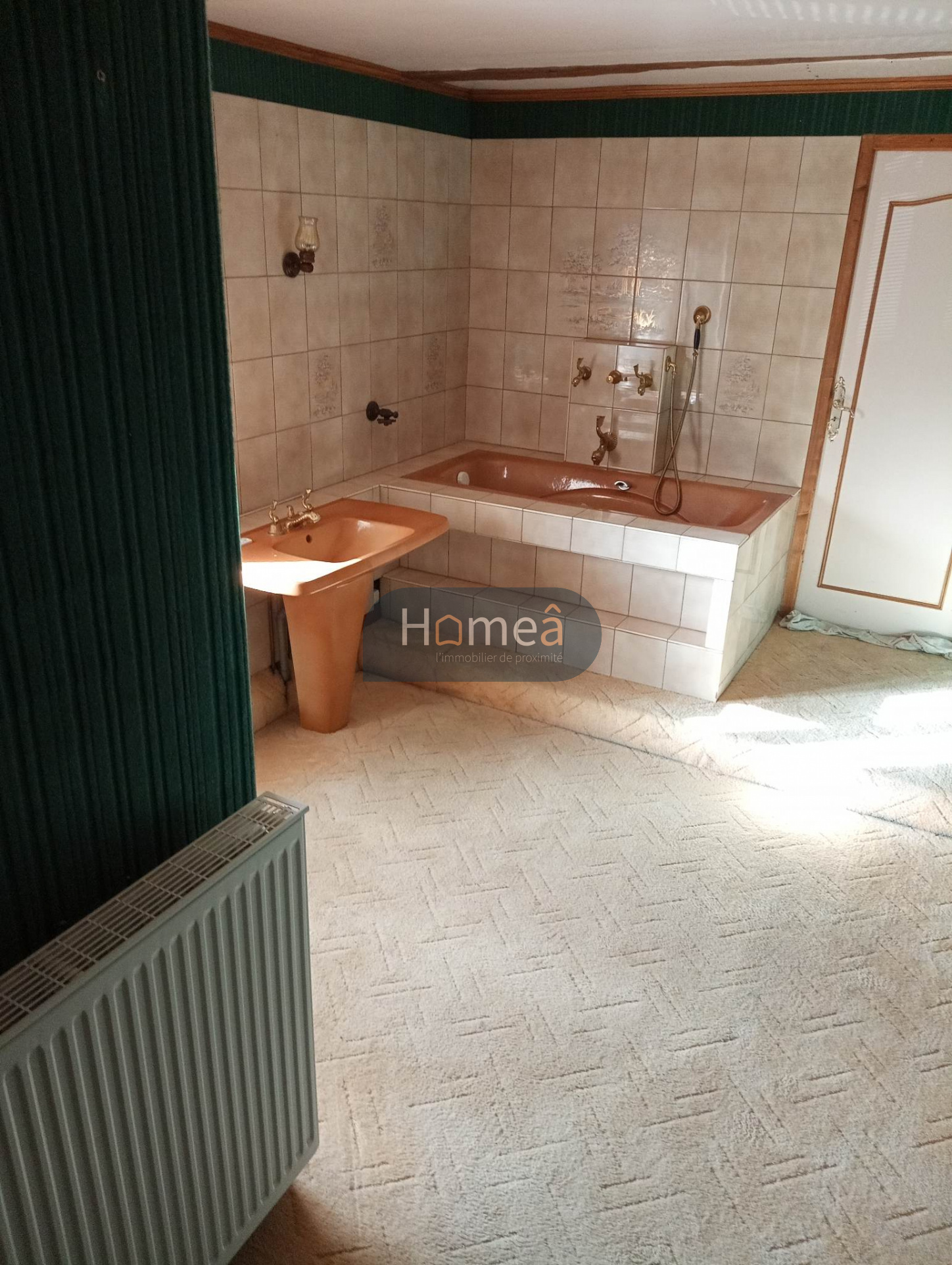 Forges les Eaux, pavillon comprenant une entrée, cuisine semi aménagée, séjour avec cheminée insert, chambre, salle de bains baignoire et douche, wc séparé, cellier. A l 'étage : espace palier bureau desservant 2 chambres, dégagement, wc, dressing avec ac...
