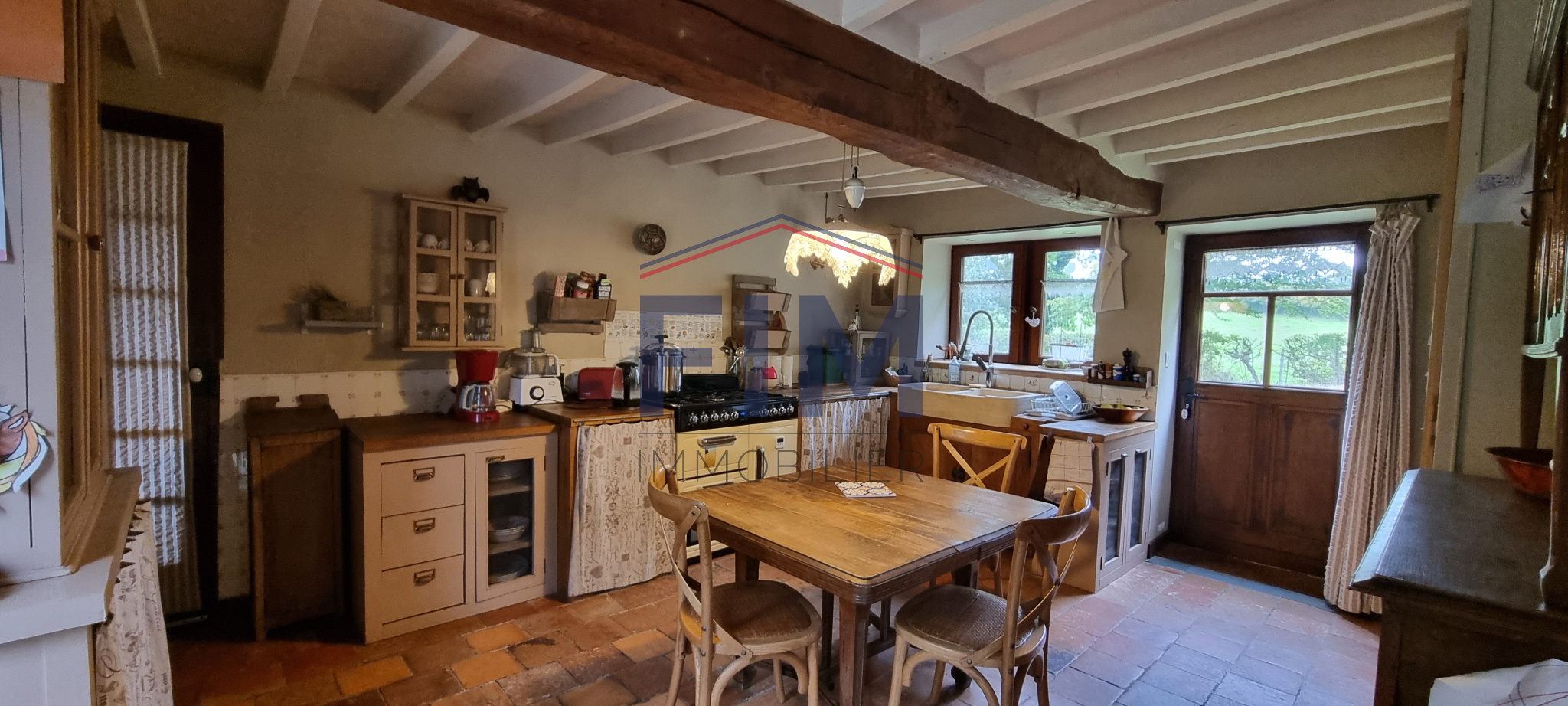proche de forges les Eaux, maison ancienne comprenant une entrée, cuisine aménagée et équipée, salle à manger, 2 chambres, salle de bains, wc, débarras, une pièce de vie composée d'une cuisine ouverte sur une salle à manger, dégagement, salle de douche ...