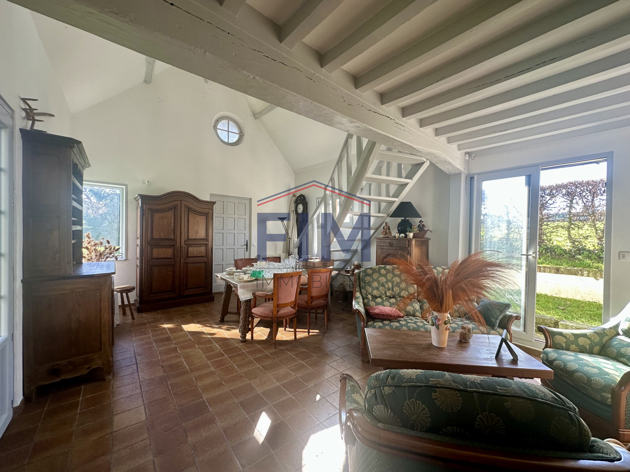 Au rez-de-chaussée, vous découvrirez un salon chaleureux agrémenté d'une cheminée ouverte, un sé...