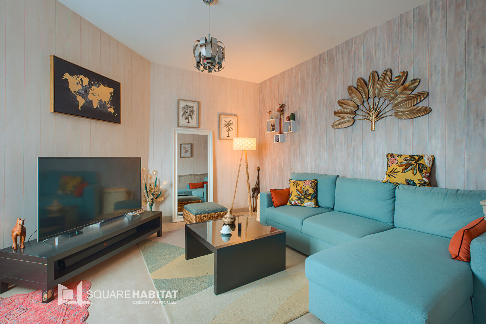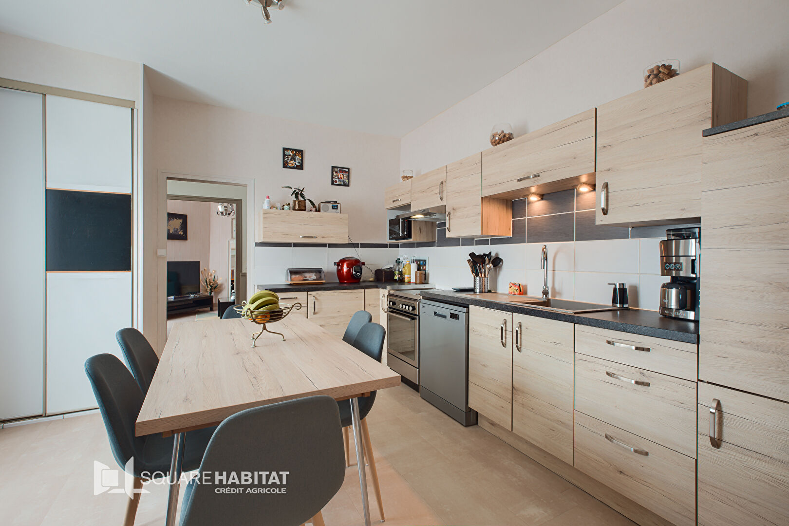 Vous trouverez au rez-de-chaussée surélevé une pièce de vie avec de plain pied avec une cuisine aménagée...