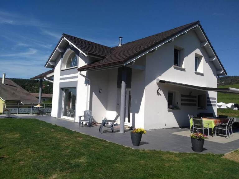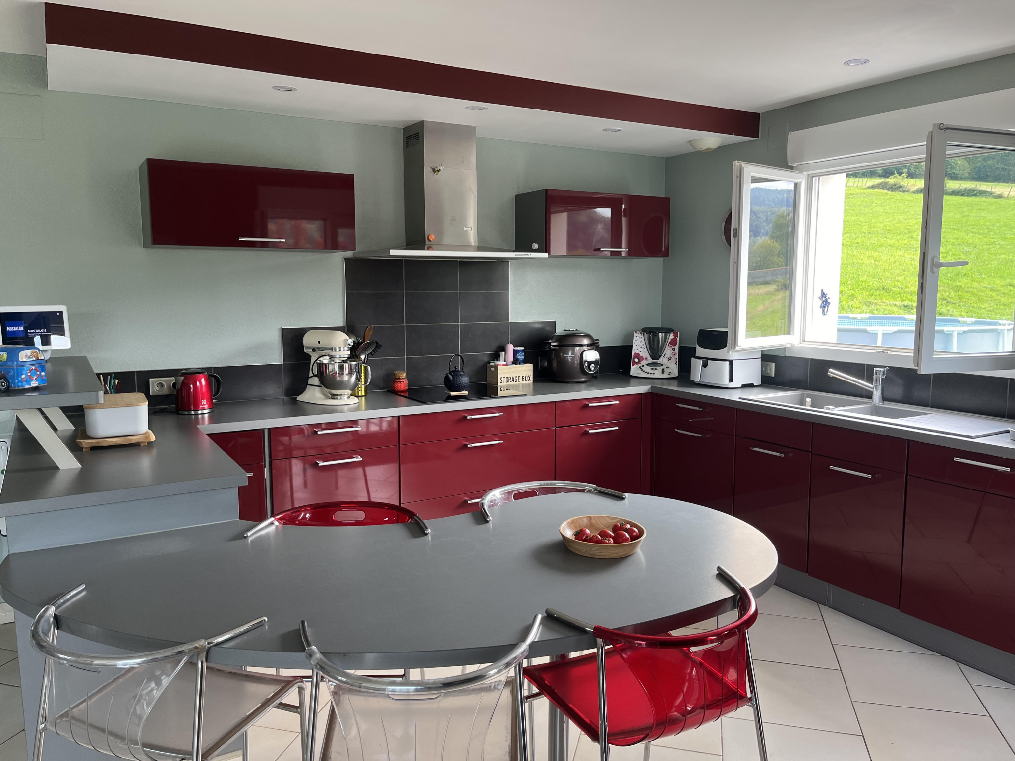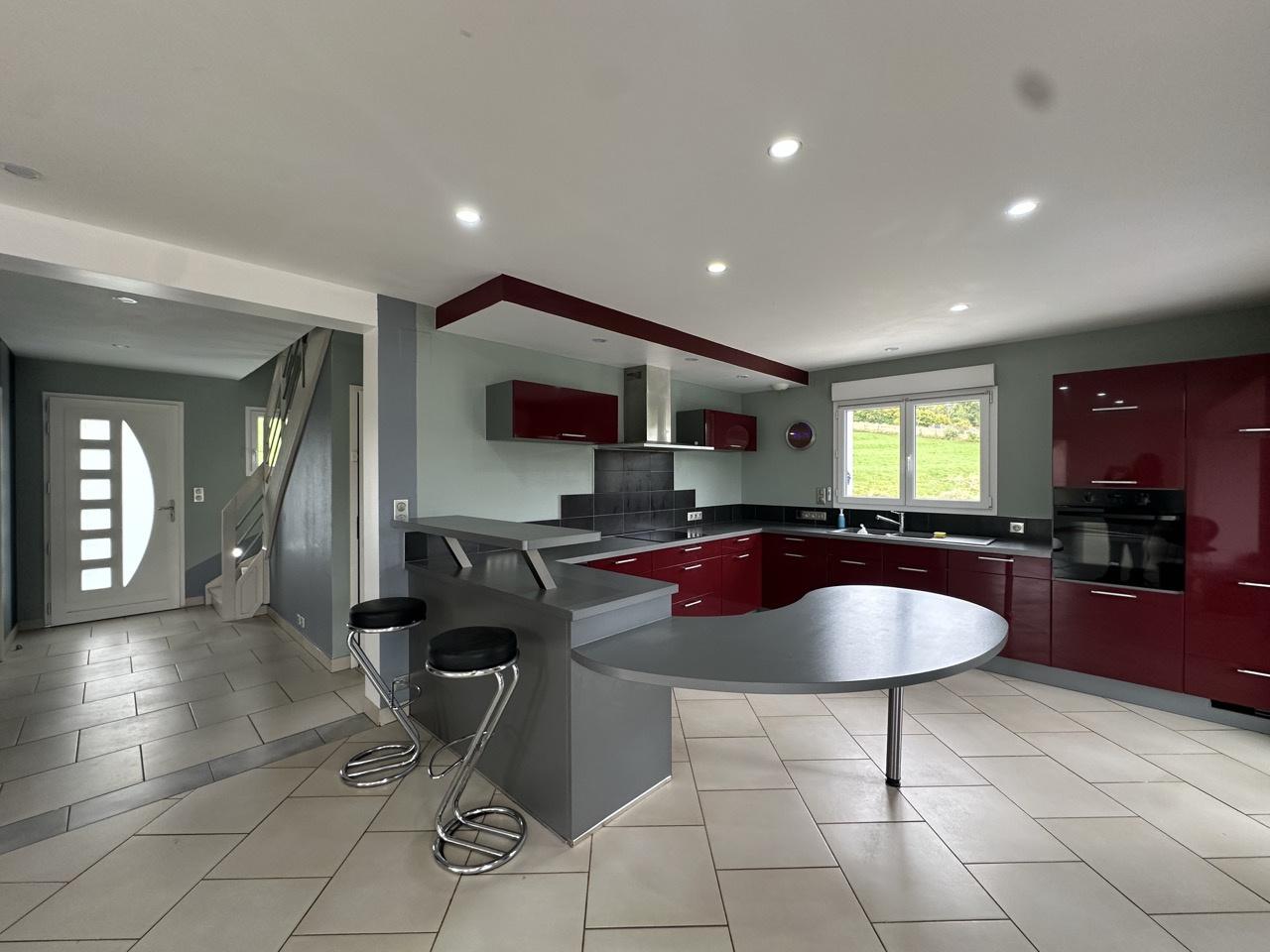 Dans un secteur paisible avec vue sur champs et forêt, cette maison de 2009 à l'allure contemporaine est composée de :