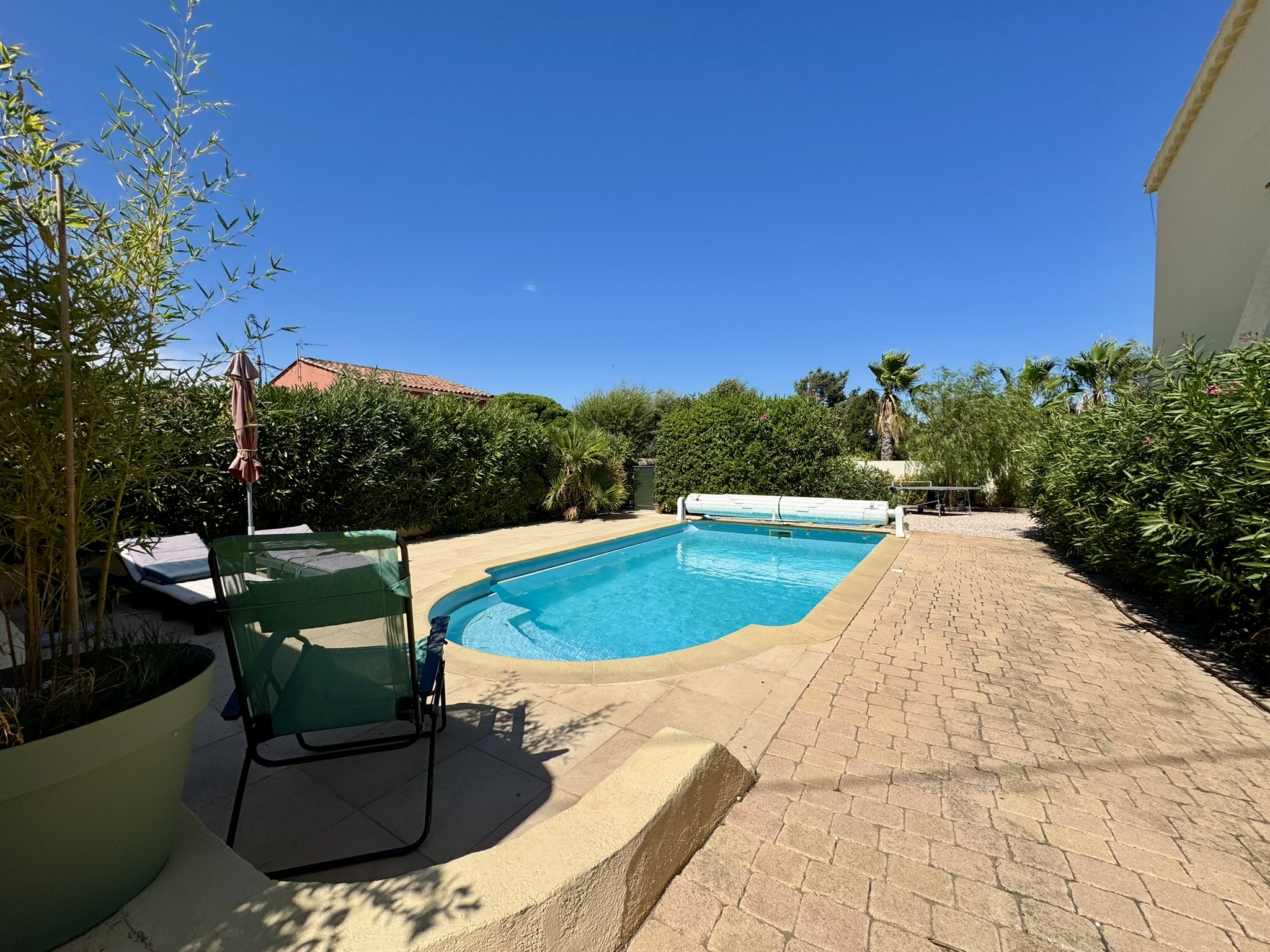 Située dans un lotissement sécurisé par portail automatique, à Fréjus, en limite de Saint-Raphaël, au coeur du quartier résidentiel de Valescure.
