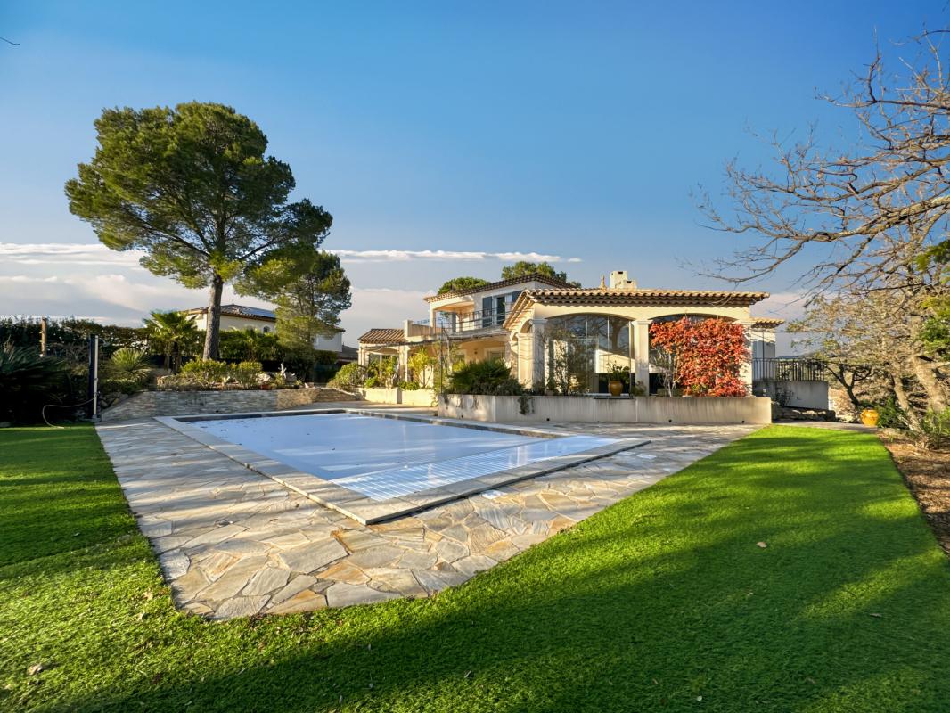 Très belle propriété dominante composée de 2 villas mitoyennes communiquantes sur terrain arboré de 1620 m2 avec picine et pool-house située dans le secteur de la Tour de Mare au calme, sans vis-à-vis avec vue sur la pinède. La villa principale d'environ ...