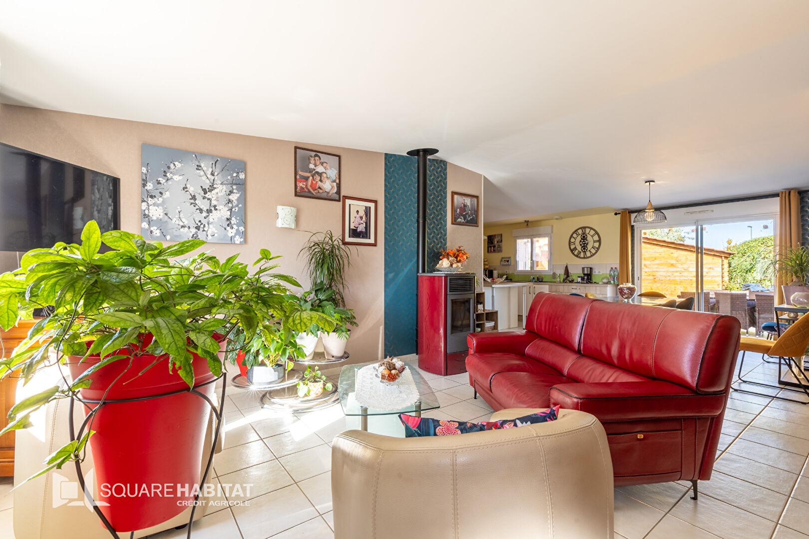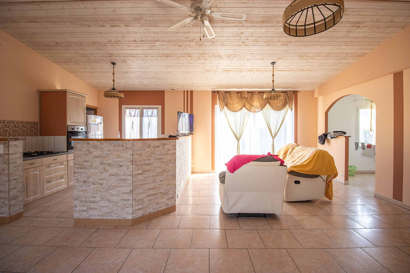 Elle se compose d'une entrée sur la grande pièce de vie d'une surface de près de 60 m² avec cuisine ouverte...