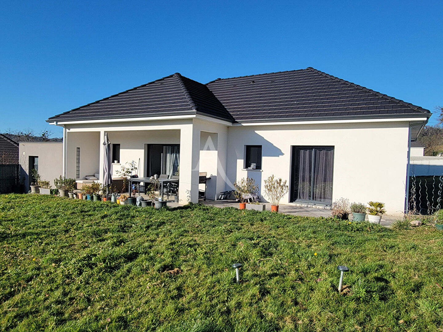 Cette maison contemporaine de plain pied de 2018 vous séduira par ces volumes généreux et ses prestations de qualités.